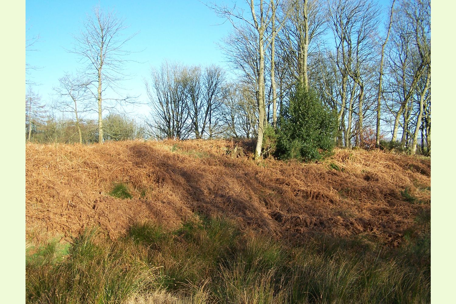 Wildlife: The peaceful surroundings with a mix of open space, healthy young trees, very tall firs and the shaded railway embankment, are an ideal home for many species of birds and ground-dwelling creatures. Woodpeckers drumming and calling in spring and early summer are common sounds while small mixed flocks of woodland birds move through the tree canopy, feeding as they go. Down at ground level, browse lines in the trees and an occasional well-worn path indicate the presence of deer, and sharp eyes may also spot a red squirrel here. These native rodents are currently being actively protected by a local charity dedicated to their preservation.