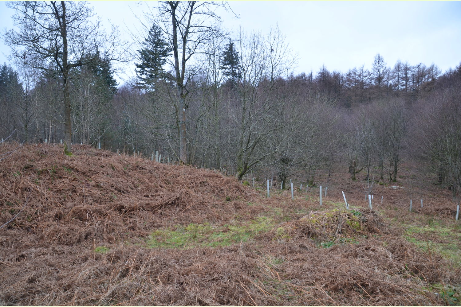 Features: Slow to colonise plants such as bluebell and primrose are found throughout Dandy Wood. These are strong indicators that it has been woodland for many years, and indeed it is designated a Plantation on an Ancient Woodland Site (PAWS). The wood was cleared and replanted with larch and Scots pine in the 1960s. A current management plan for the wood has been prepared with the assistance of Cumbria Woodlands. This has been made available for any owner of the woods to use if desired.
