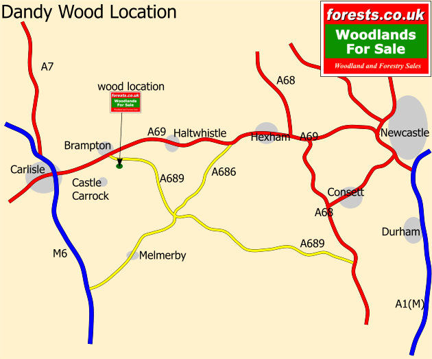 Dandy Wood is just off the A69 south of Brampton, about 20 mins from Carlisle and an hour from Newcastle.