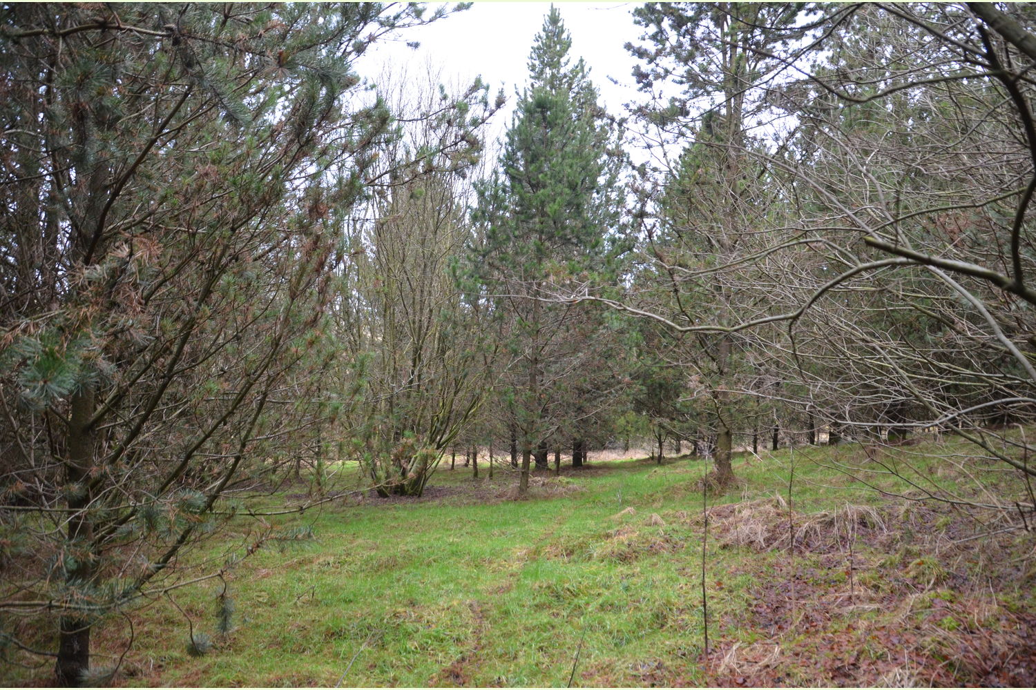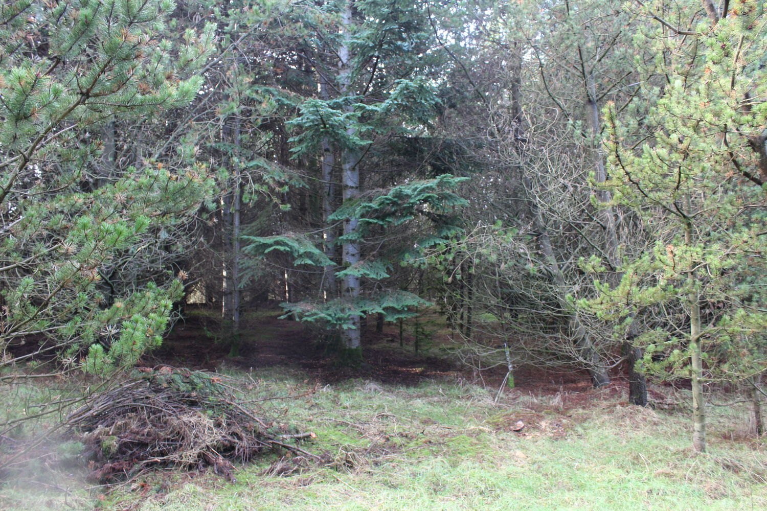 By and large, the wood is a Corsican pine plantation with a scattering of Norway spruce and occasional Scots pine and a number of self-seeded willow dotted about.