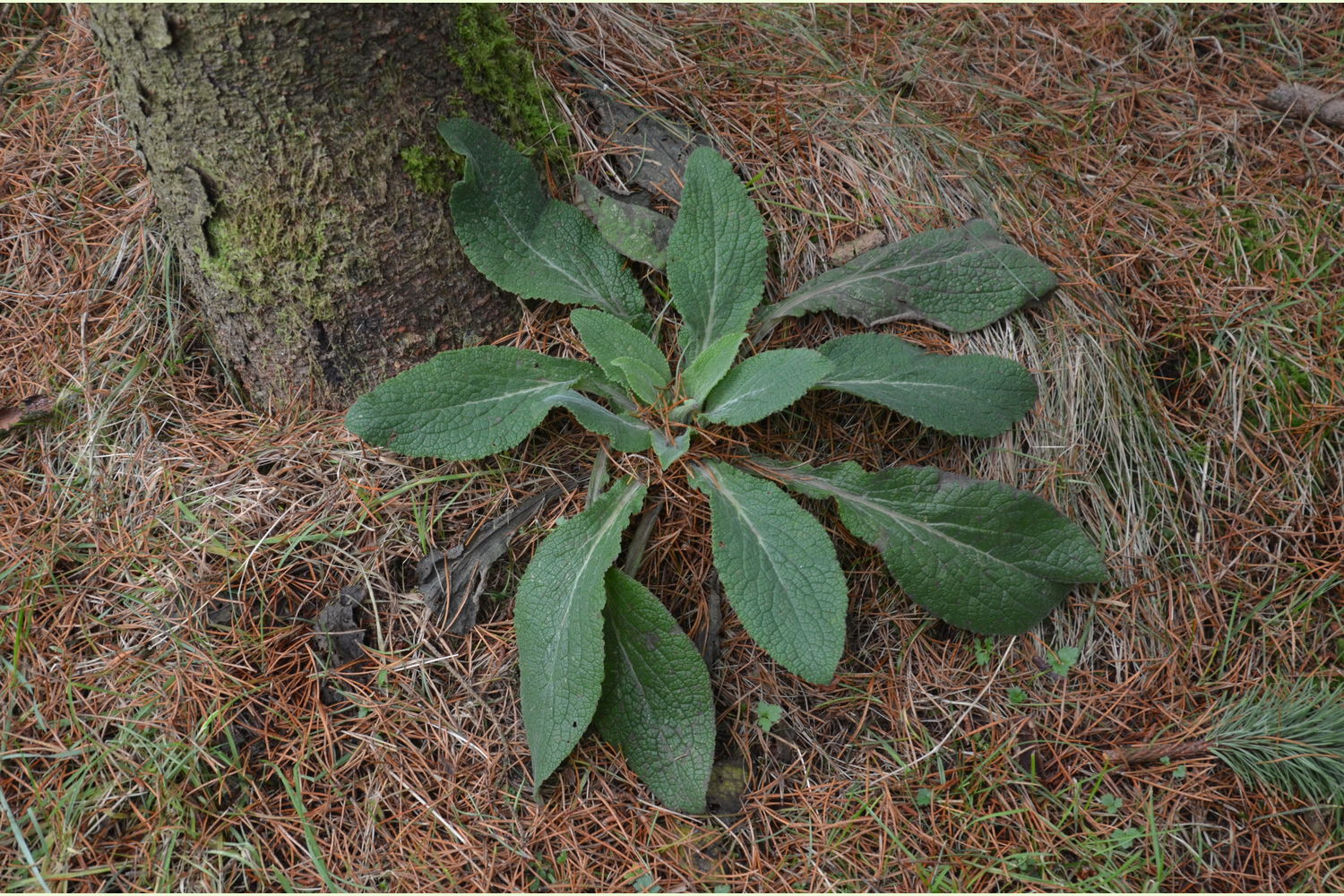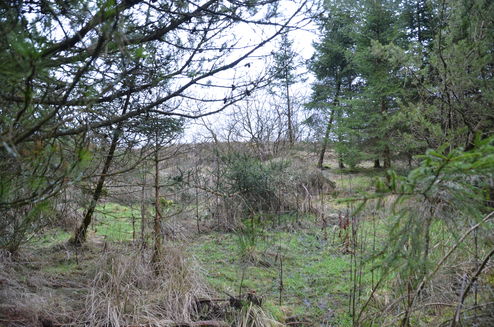 A bare field plantation, the forest floor is already showing signs of naturalisation, with sorrel and foxglove emerging through the grasses.