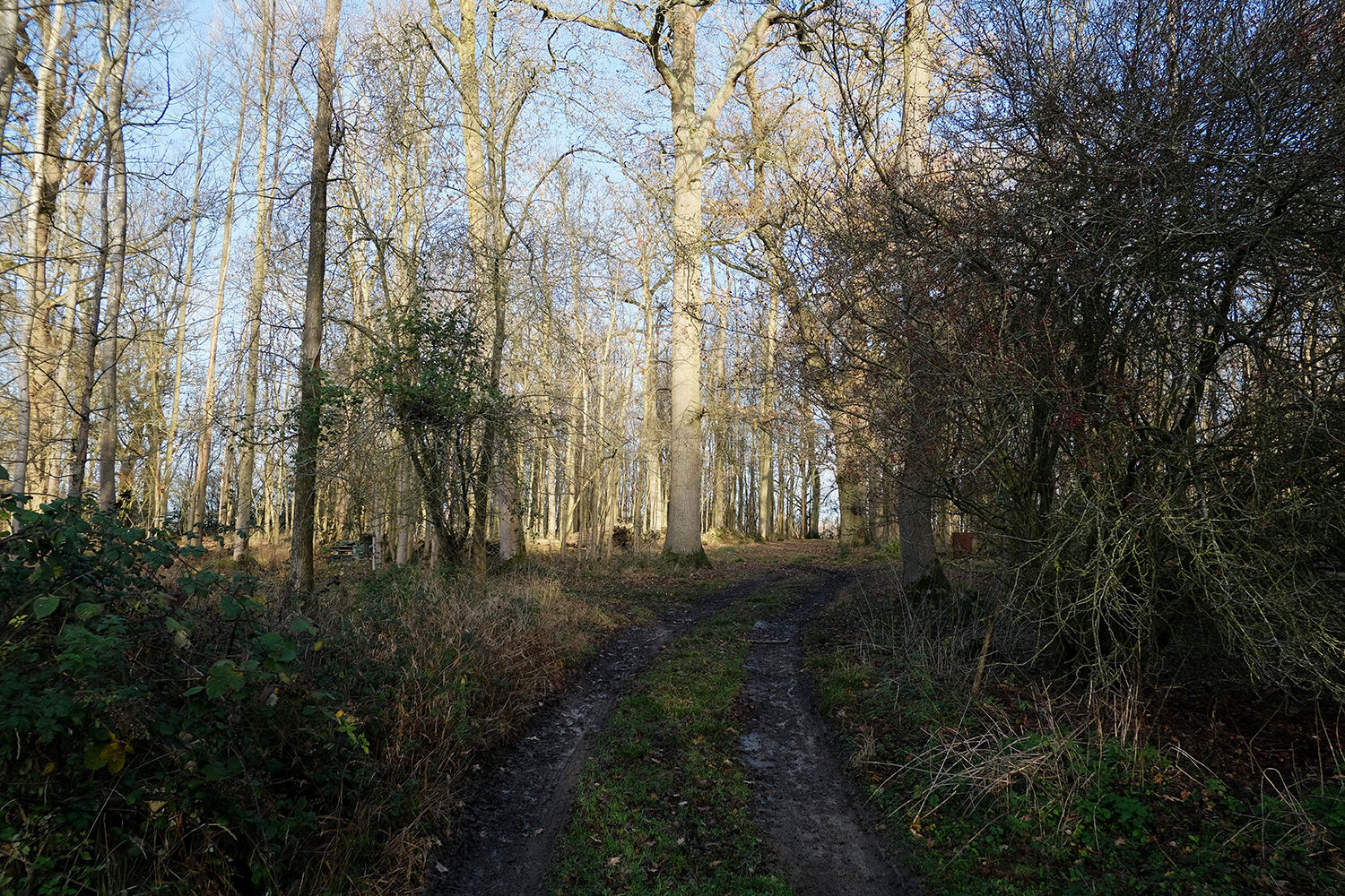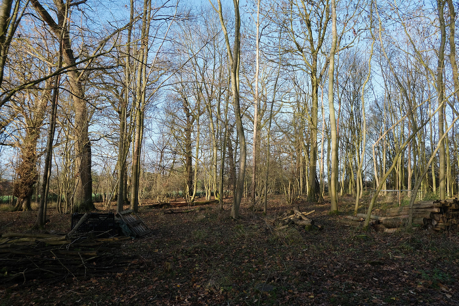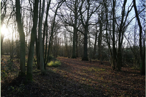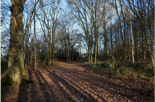 The land is flat and easy to walk throughout. In spring, daffodils and bluebells bring seasonal colour in the northern section. Open fields border the woodland to the west and south, creating pleasant views and allowing light to filter through the trees.