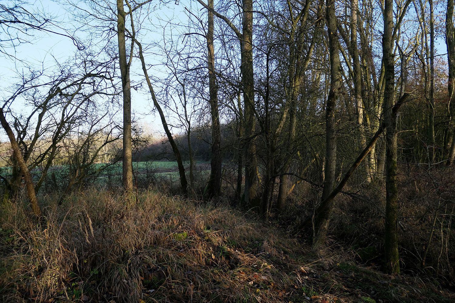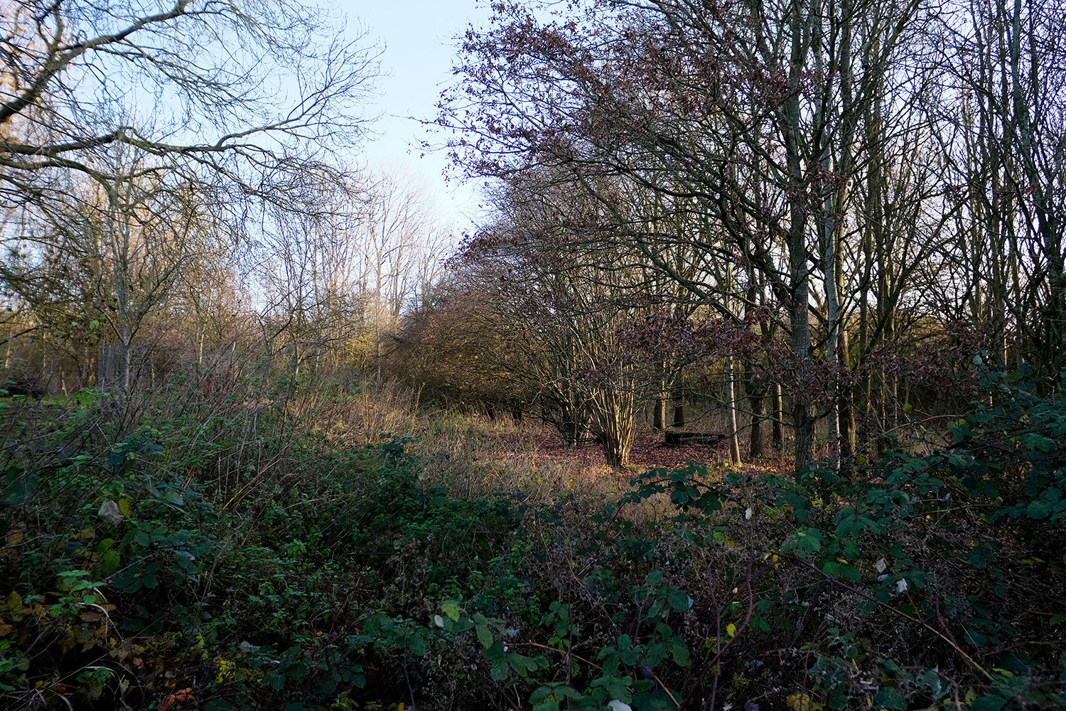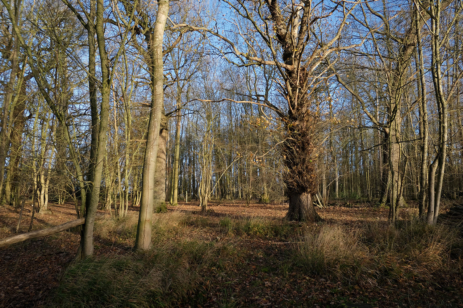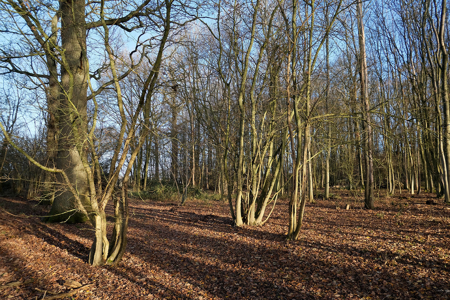 In the southern part of the woodland, younger broadleaf species dominate, including oak, cherry, ash and birch. At lower levels, hazel, hawthorn, field maple and spindle add to the diversity.