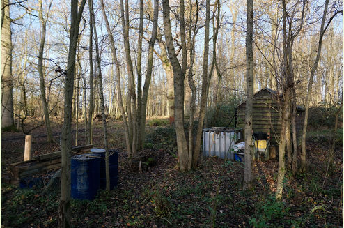Accessed via a charming private track, the approach winds through the site past a small pond before reaching the heart of the woodland. At its centre, several generous glades open out, offering space for parking and a range of woodland pursuits. A practical shed is also located here, providing useful storage and shelter.