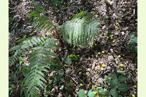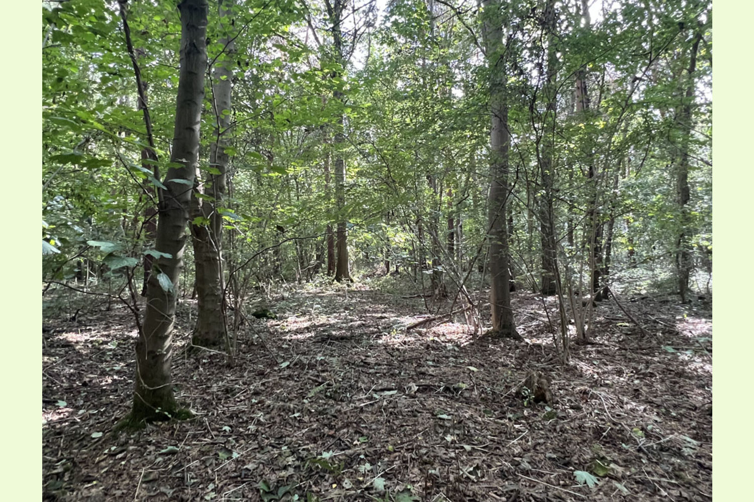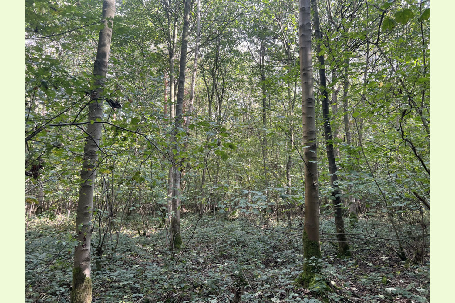 On arriving at the ride stop entrance on the northern boundary of Deighton Wood, the visitor will see that it’s possible to park a vehicle on a hard standing and from here a path leads off through the trees. At first, the vegetation seems quite dense with lots of coppiced hazel and young sycamore growing beneath the more mature trees, but after approximately 20m, the canopy provides more cover and the wood is a little more open at ground level, meaning that it’s very easy to get about on foot. The ground is conveniently level with a slight fall away to the south.