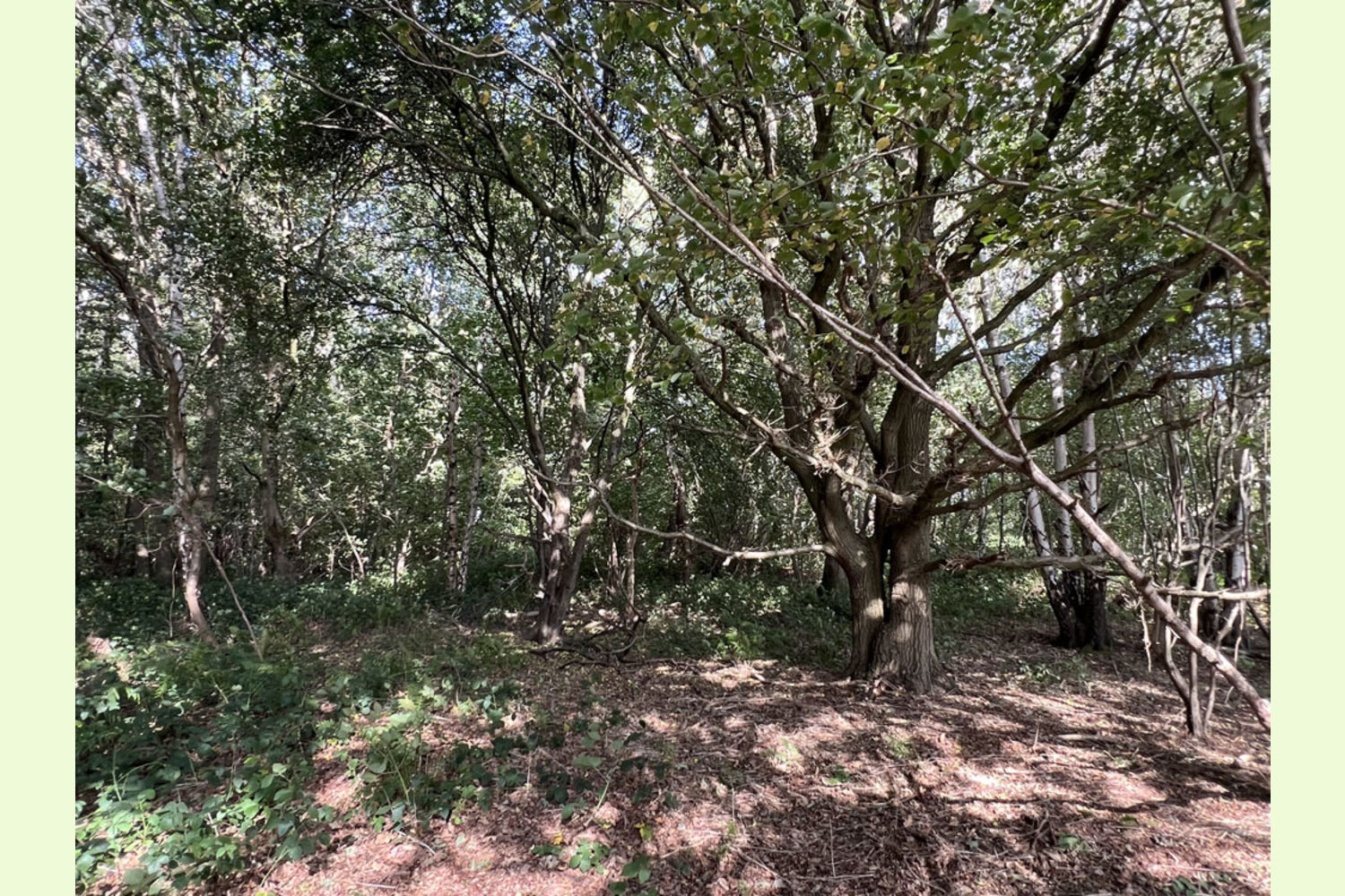 Small birds such as tits, as well as resident tawny owls, enjoy the canopies of the Scots pine trees that are dotted throughout the western part of the wood. It’s a warming sight to look north through the wood and see the russet-hued trunks, almost glowing in afternoon sunlight.