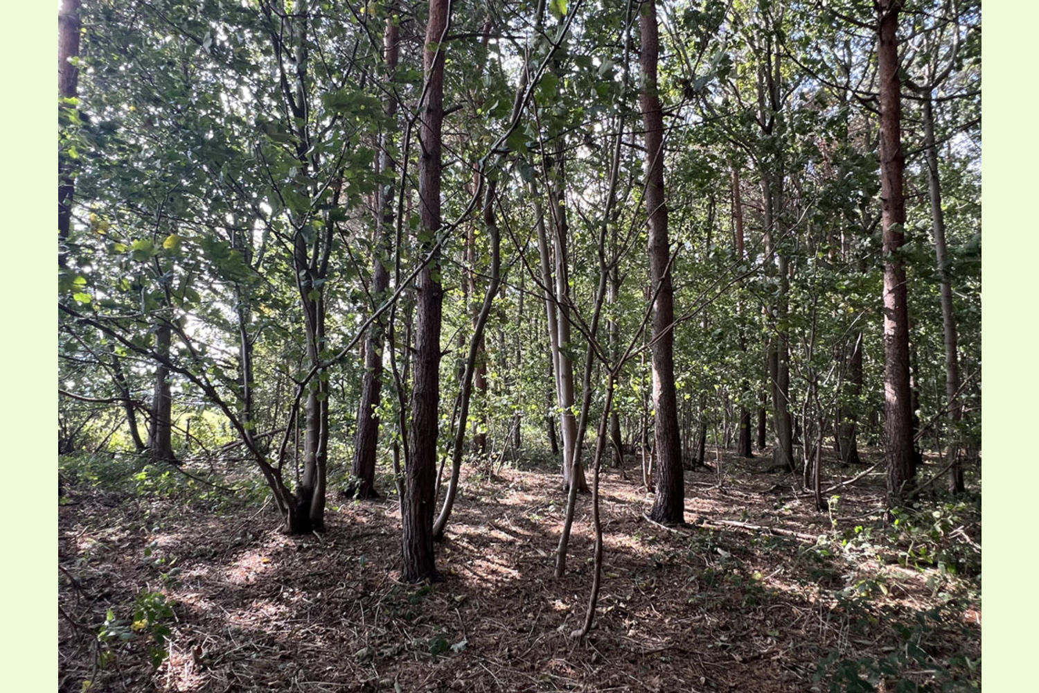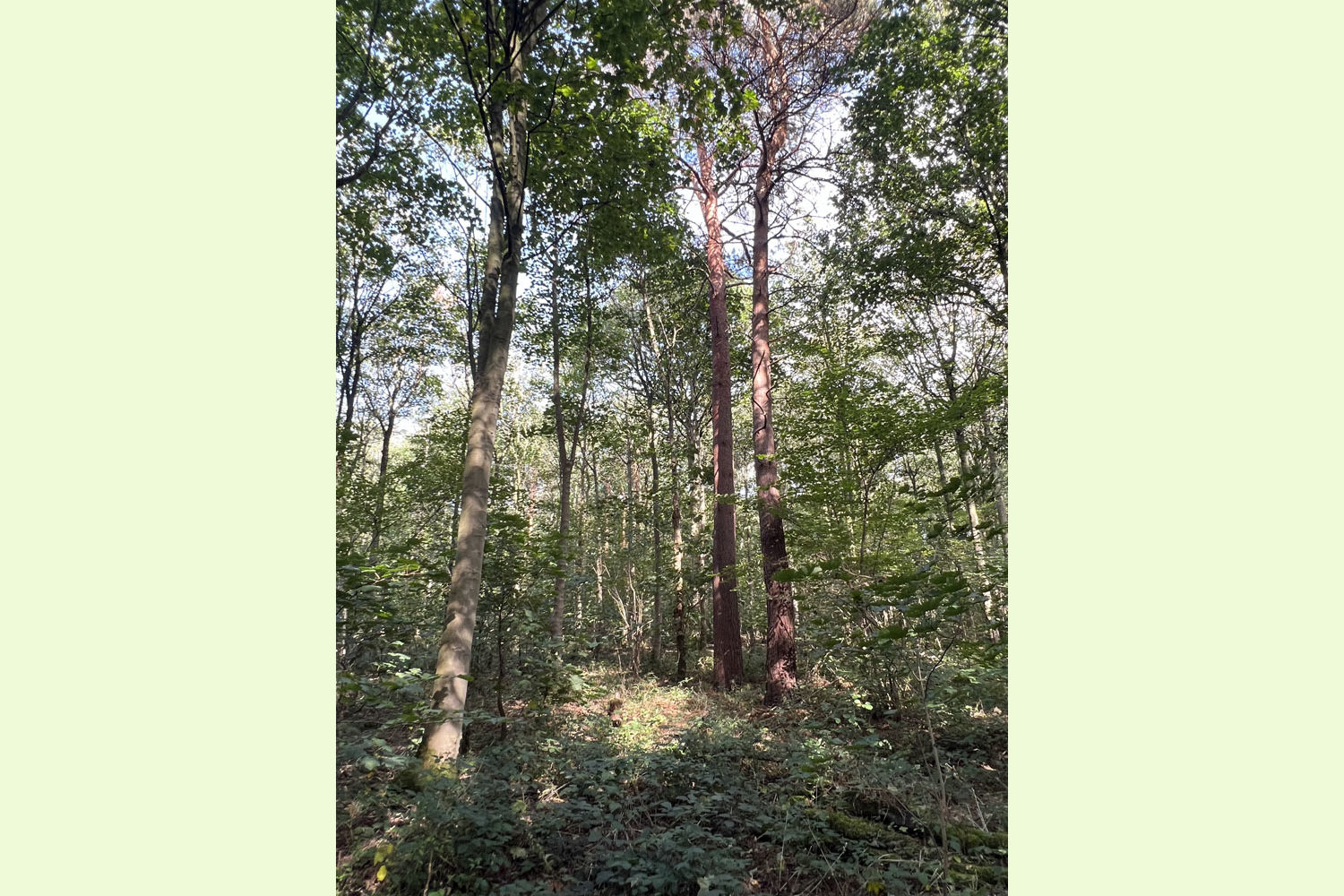 A wood with a very well balanced mix of broadleaved trees and pines in a quiet yet easily accessible location, just south of York.