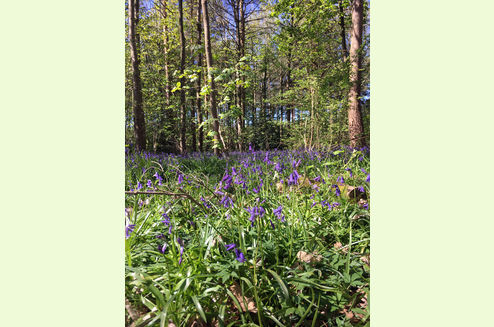 The foot route leads to a space under tall sycamores, this area would make a good camp ground or place for a fire with family and friends. In the spring, this area and large parts of the wood are awash with vibrant bluebells, signifying that Britain’s summer is on the way. At the same time, the woodland birdsong is almost unending, but the birds stay present all year round; buzzards, blackbirds, robins and long-tailed tits are never very far away.