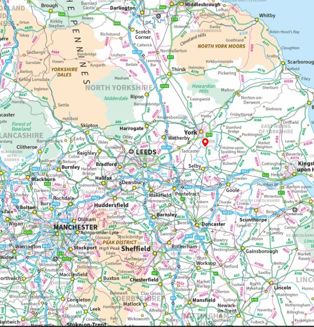 - From the A19 Barlby Road, Selby, travelling north, continue for approximately 7 miles, passing Riccall.