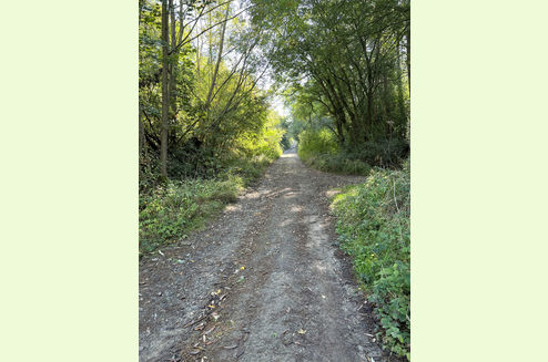 - Walk round the green entrance barrier and continue along the track (Wolds Lane), and follow the track round a sharp right hand bend and then take the lefthand downhill turn.