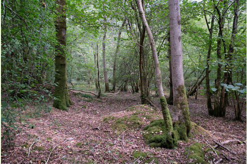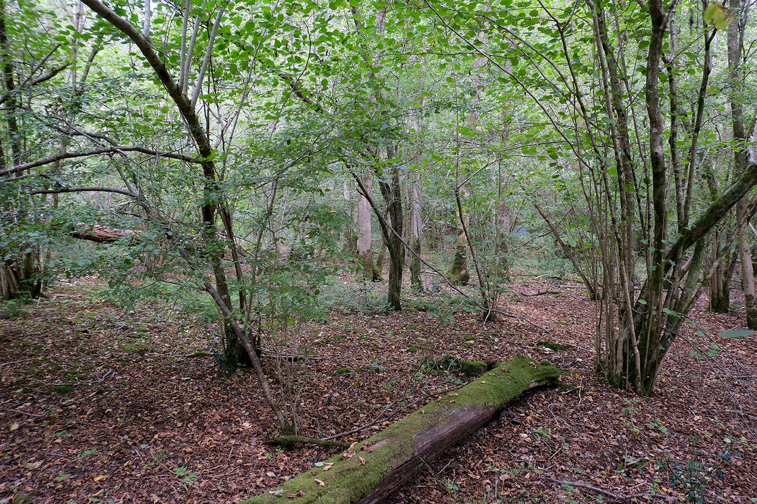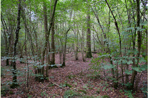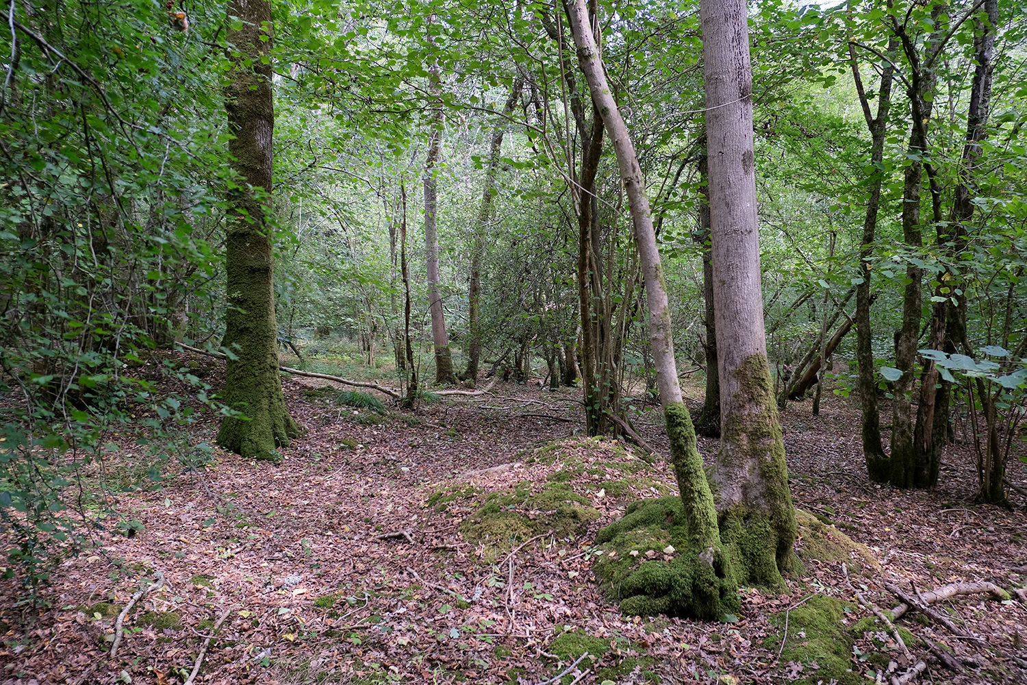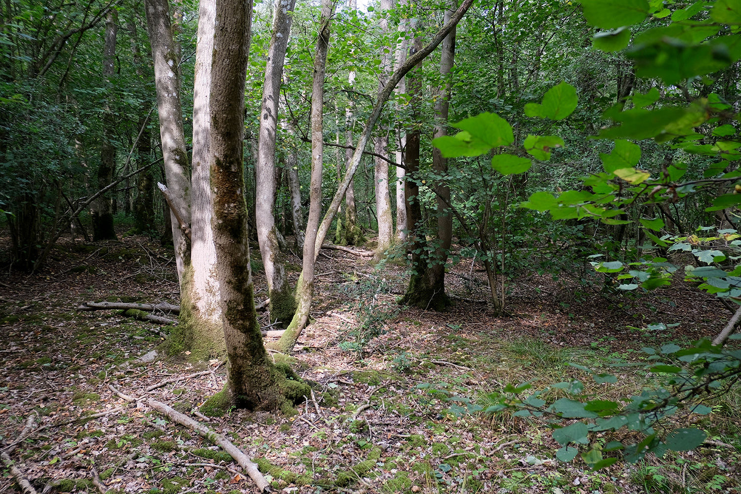 The terrain is level and bramble-free, making exploration easy. Numerous clearings can be found dotted throughout the site, perfect for establishing a base for woodland activities. The canopy is made up of oak, chestnut and ash with an understory of birch, hornbeam and hazel, hawthorn, and holly, adding to the variety. In season, the woodland is carpeted with bluebells and primroses.