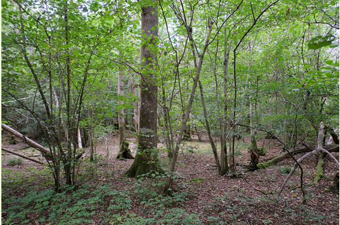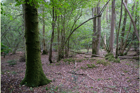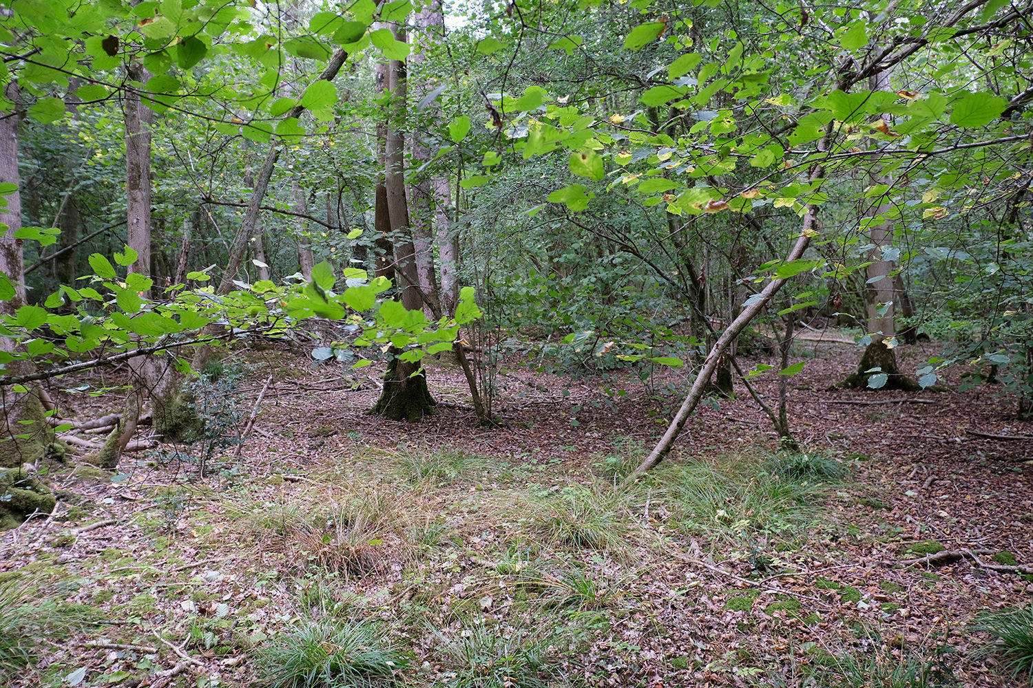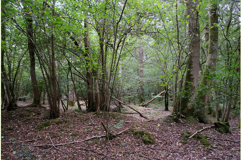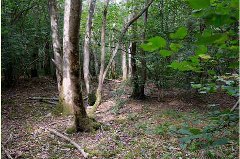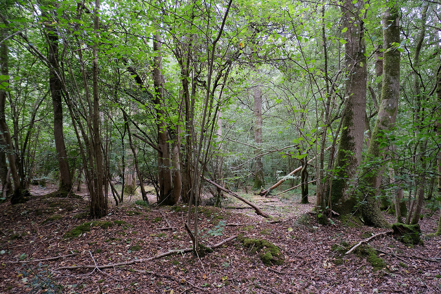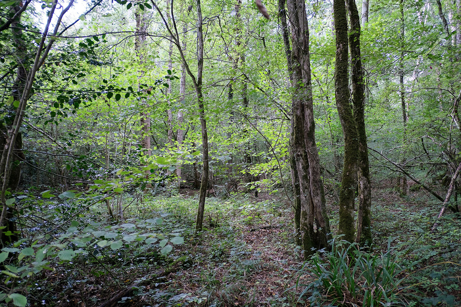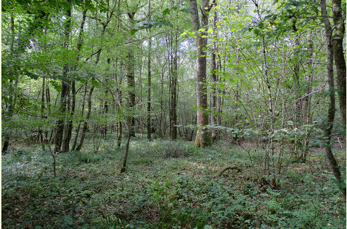 The terrain is level and bramble-free, making exploration easy. Numerous clearings can be found dotted throughout the site, perfect for establishing a base for woodland activities. The canopy is made up of oak, chestnut and ash with an understory of birch, hornbeam and hazel, hawthorn, and holly, adding to the variety. In season, the woodland is carpeted with bluebells and primroses.
