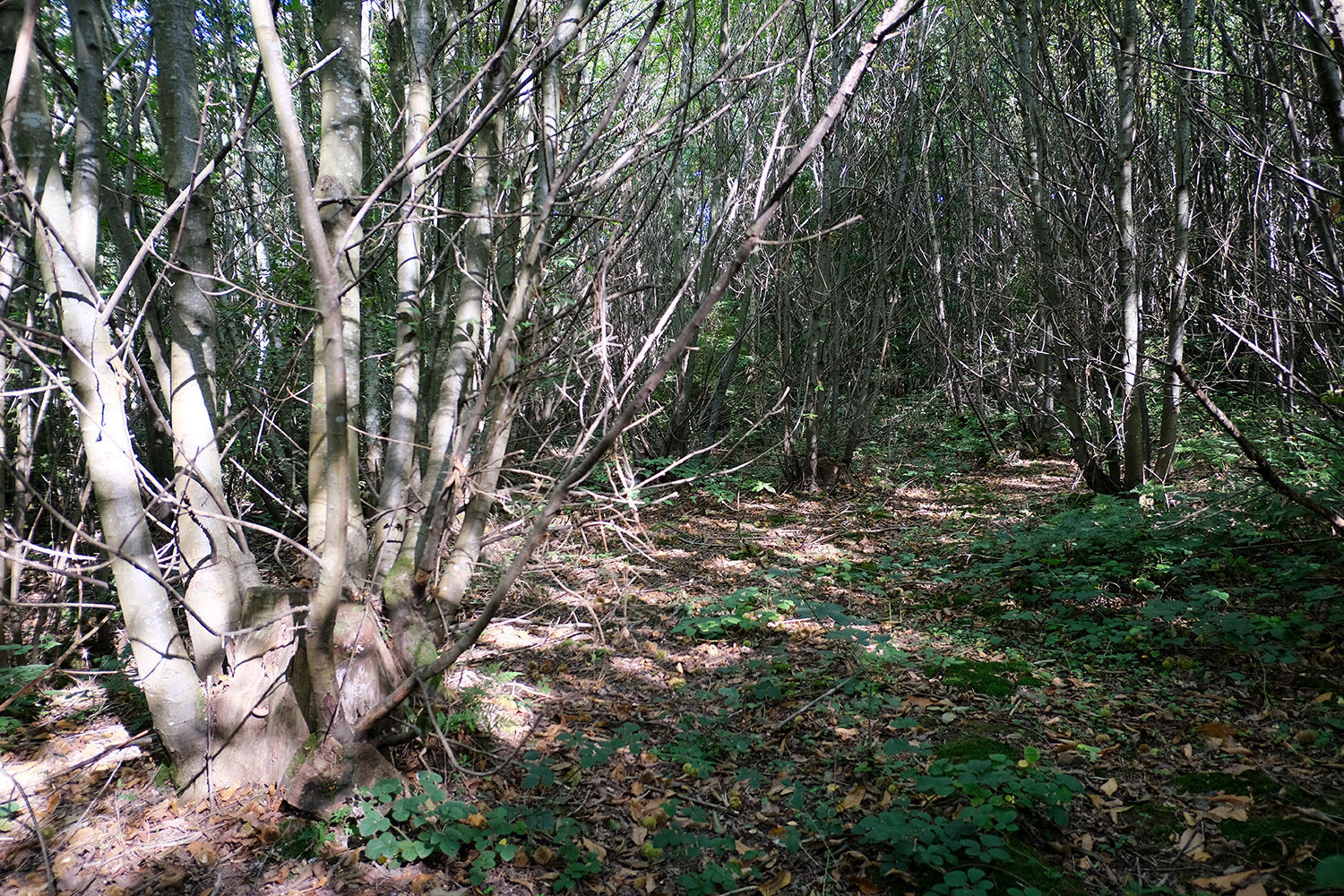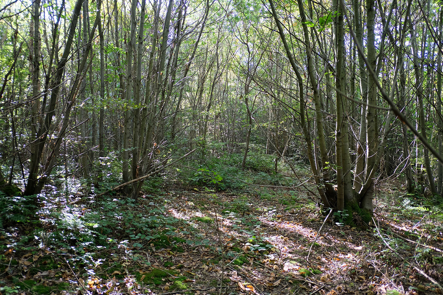 The woodland is primarily chestnut coppice, interspersed with oak, birch, beech, hawthorn, and hornbeam. The terrain is mostly flat and easy to navigate, though some parts have become dense where nature has been left undisturbed for several years. Scattered throughout the wood are a few open glades, ideal for setting up base camps or hosting woodland activities.
