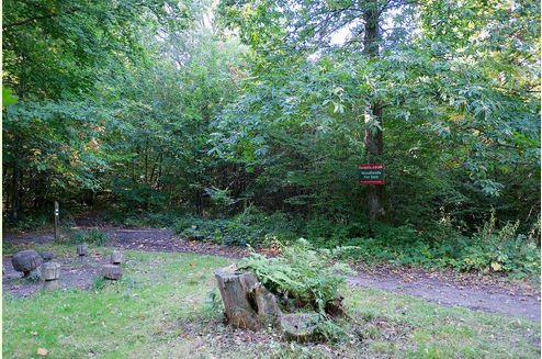 - Pass by the kissing gate and follow the footpath for approx 200m. When you come to a crossroad in the track, the woodland will be directly in front of you to the right of the track ahead, Owen's Perch will be on your right.