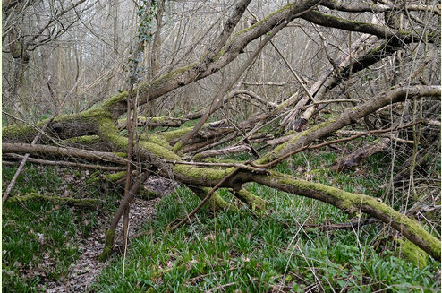 Mature oak stand over a well mixed, semi-ancient woodland, mainly made up of hazel, birch, sycamore and ash. A small stream runs along the western boundary down to a footbridge that joins the main ride to the southern point of the wood. The stream attracts an array of wildlife and woodpeckers are a common sighting.