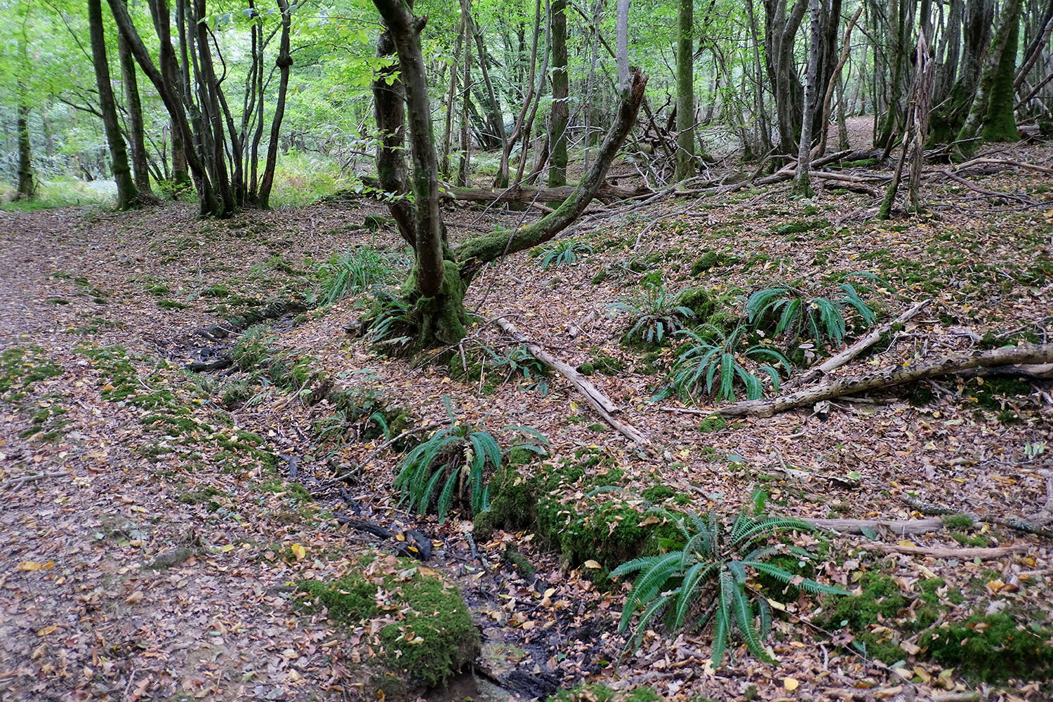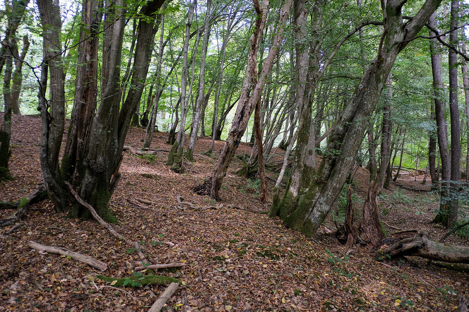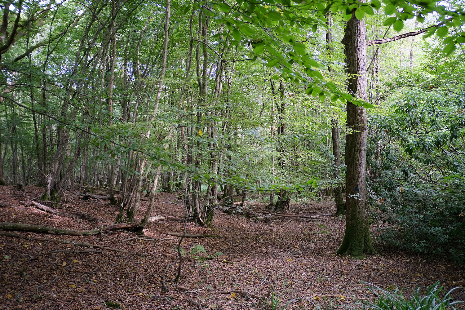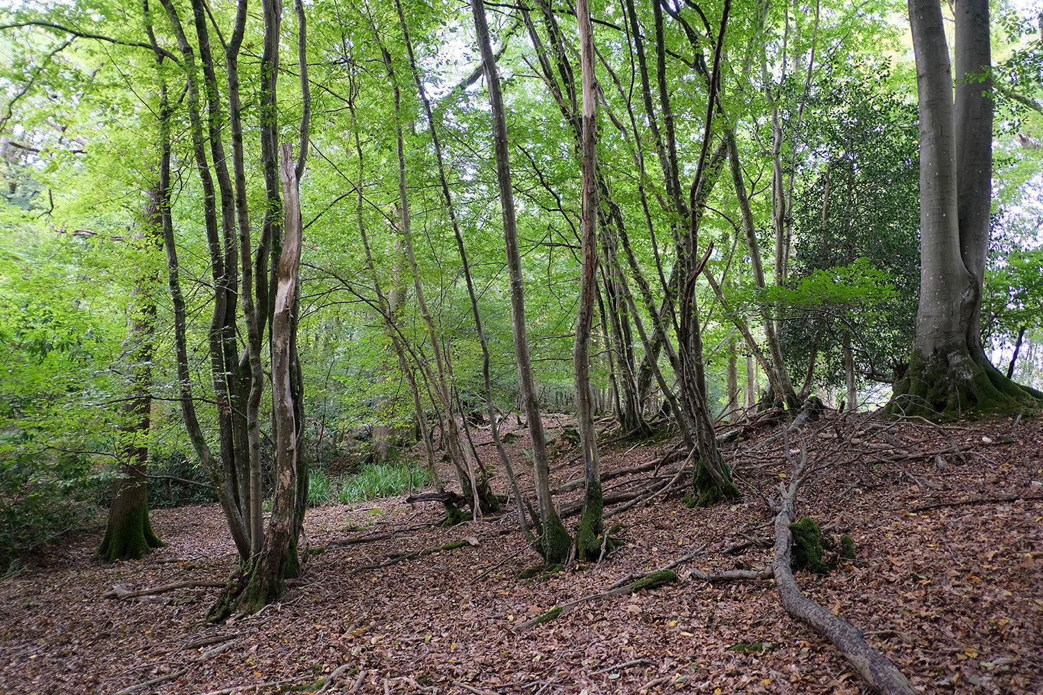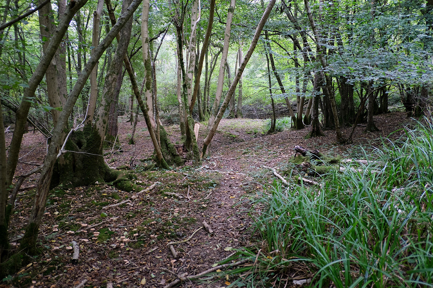 The wood is dominated by hornbeam, with birch, oak, ash, beech, hazel and holly adding to the variety. At ground level, the site is bramble free, with good open areas. The terrain is flat and gently sloping on the most part offering plenty of opportunities to set up a camp base.