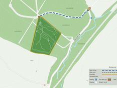- Climb over the gate or pass through the boundary to access the site and follow the track marked blue on the map.