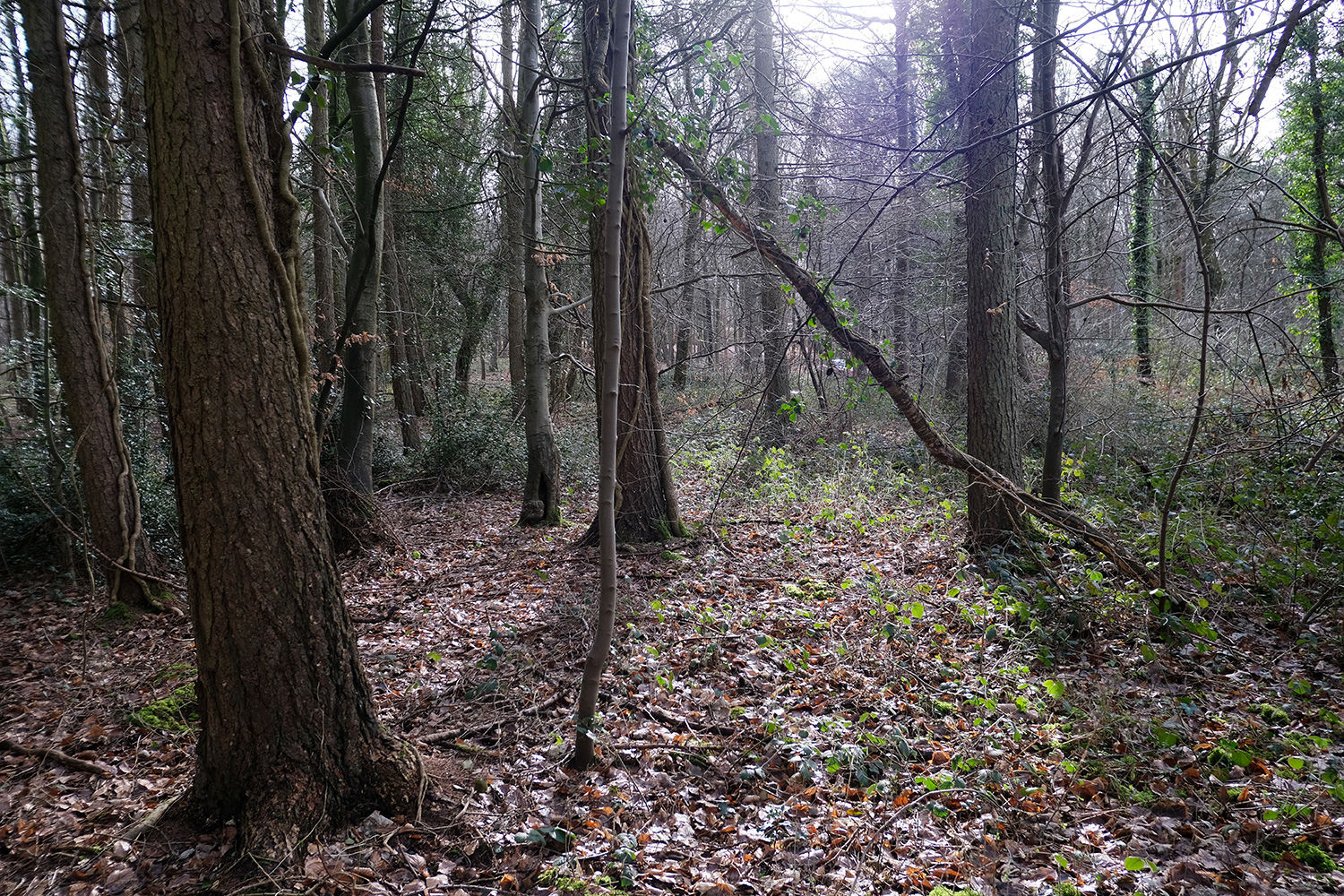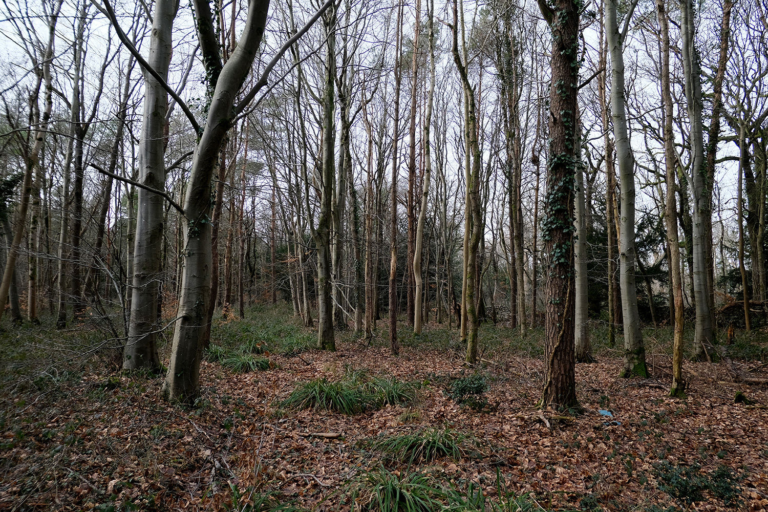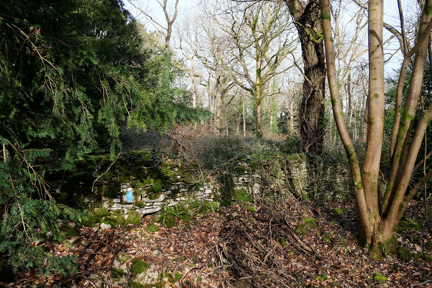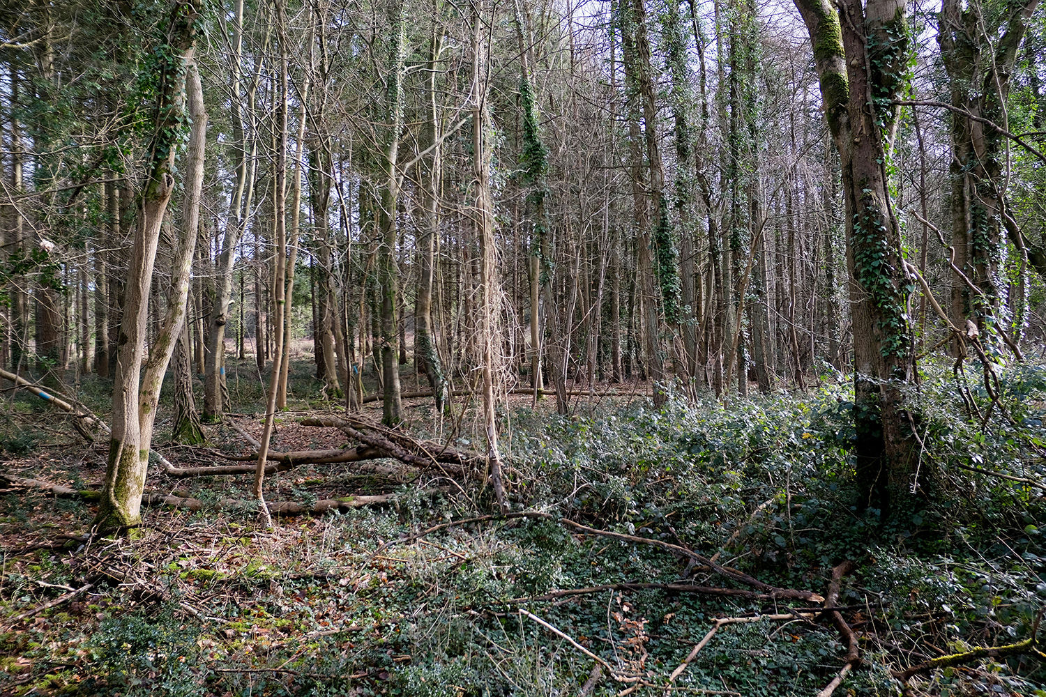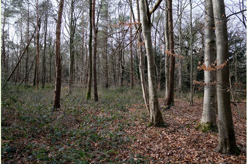 The woodland is attractively mixed, with impressive oak and beech dominating the central areas, with a scattering of ash, hawthorne and holly at lower levels. To the east, an open ride runs north to south framed by tall conifers providing striking contrast while providing additional access for management purposes. The occasional yew can also be found dotted throughout the wood and alongside the old stone wall that marks the northern boundary.