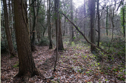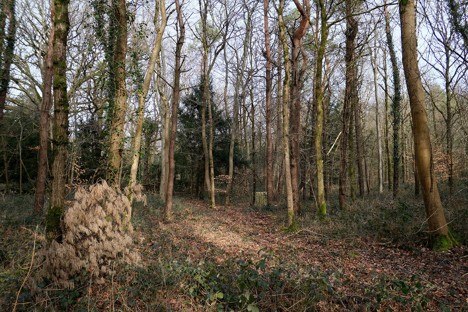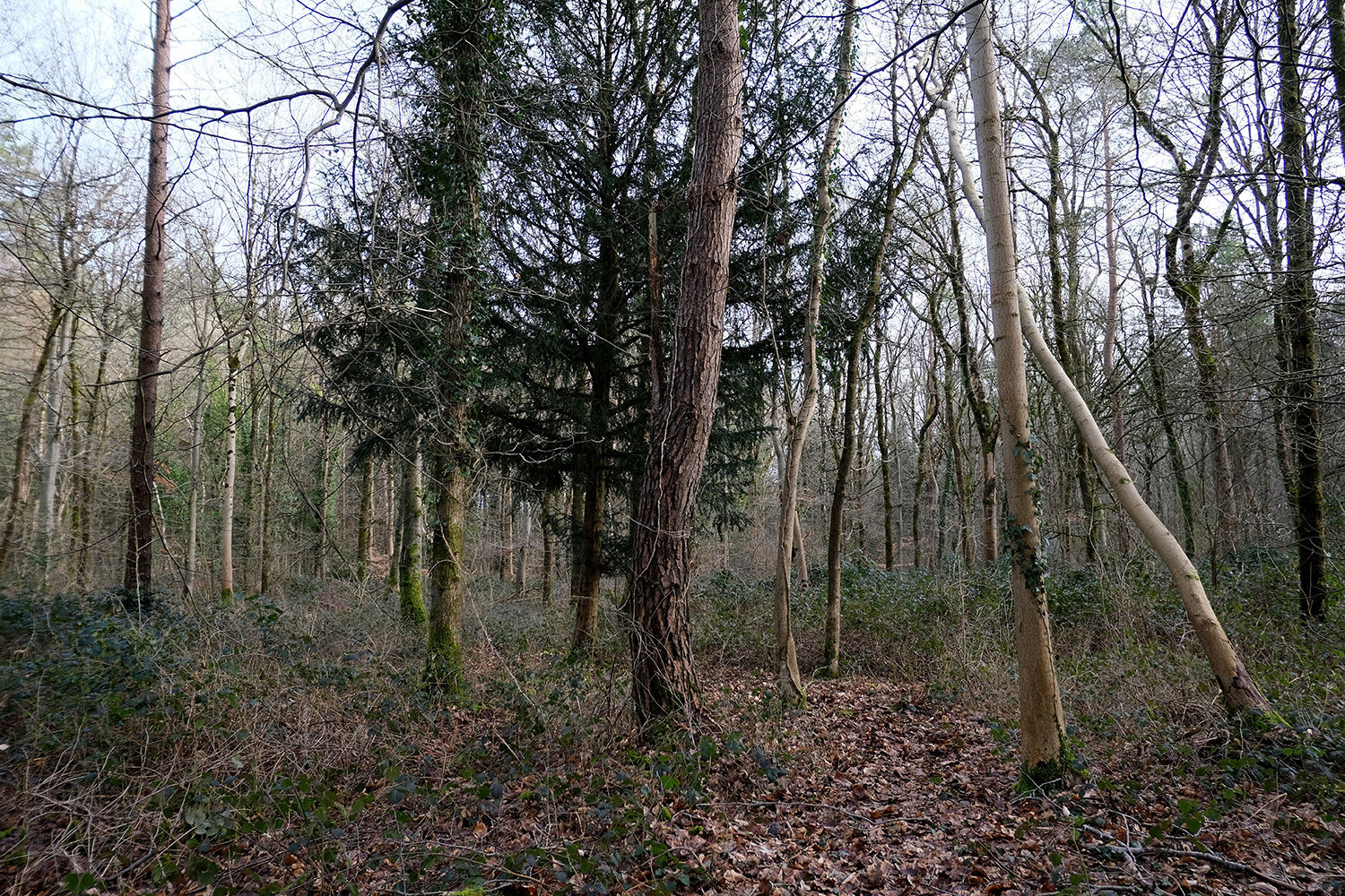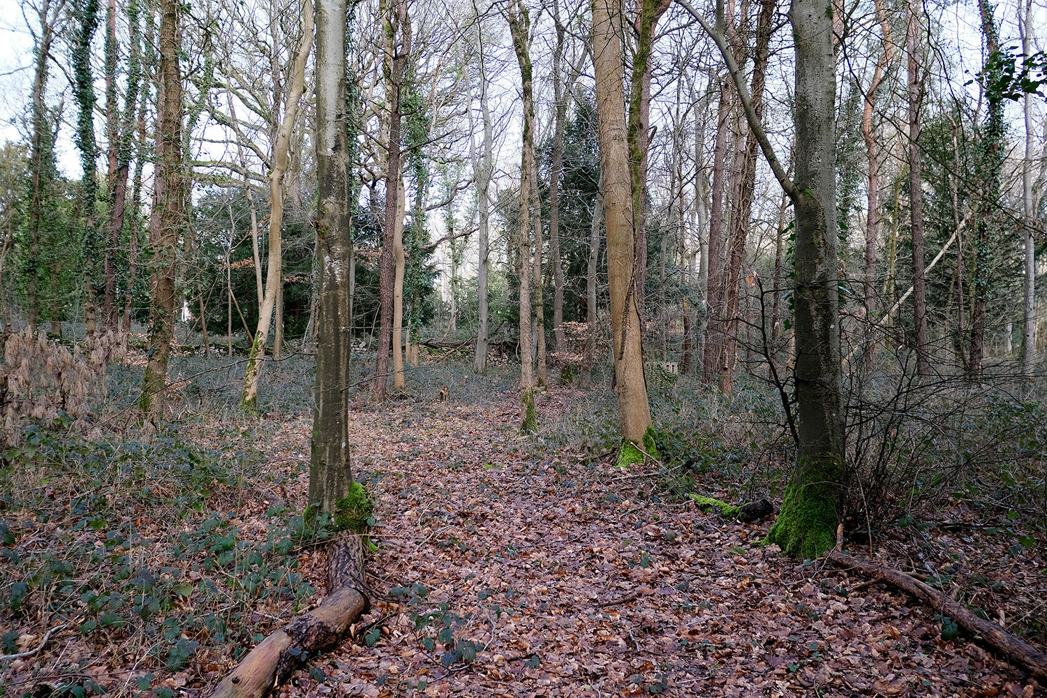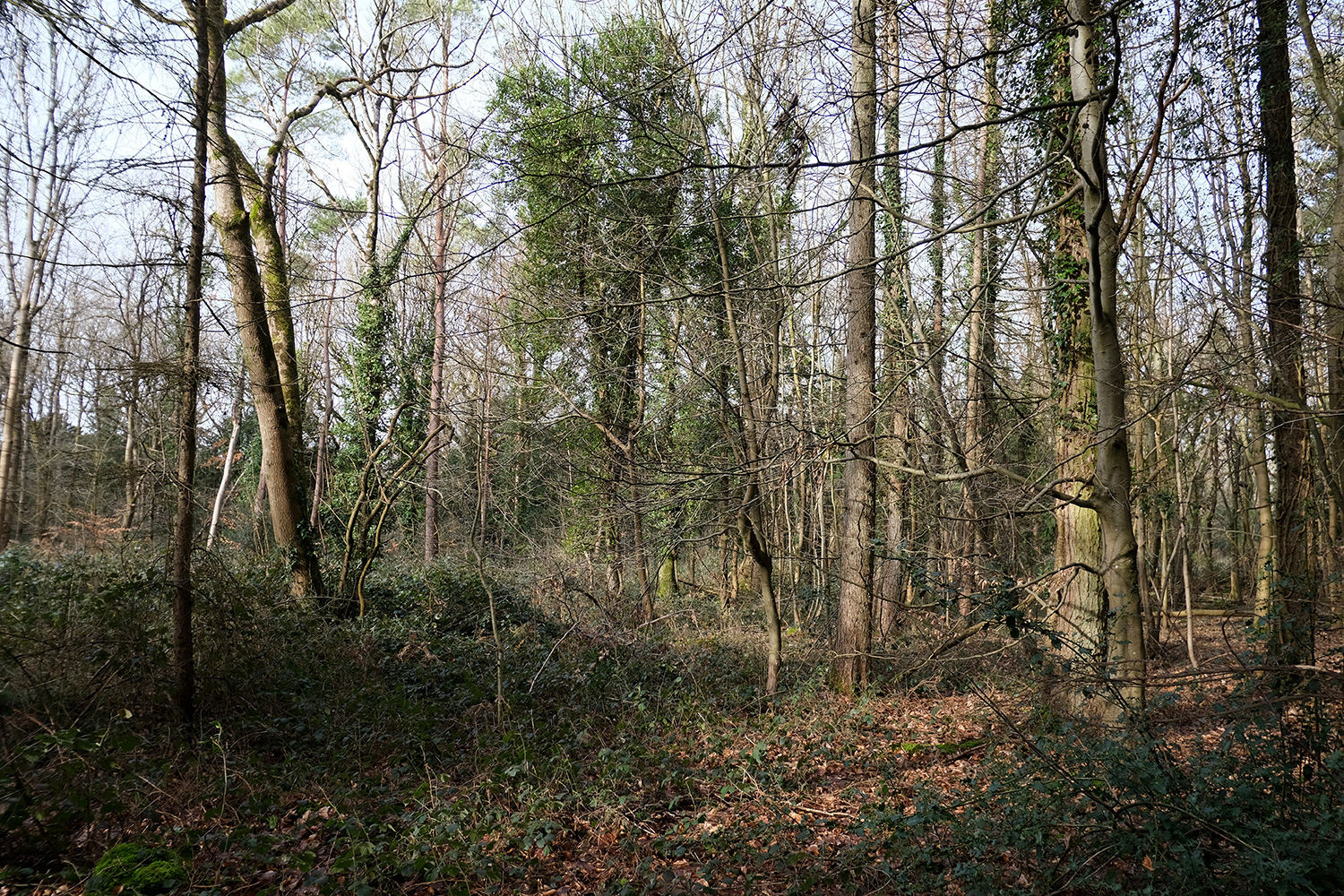 The woodland is attractively mixed, with impressive oak and beech dominating the central areas, with a scattering of ash, hawthorne and holly at lower levels. To the east, an open ride runs north to south framed by tall conifers providing striking contrast while providing additional access for management purposes. The occasional yew can also be found dotted throughout the wood and alongside the old stone wall that marks the northern boundary.