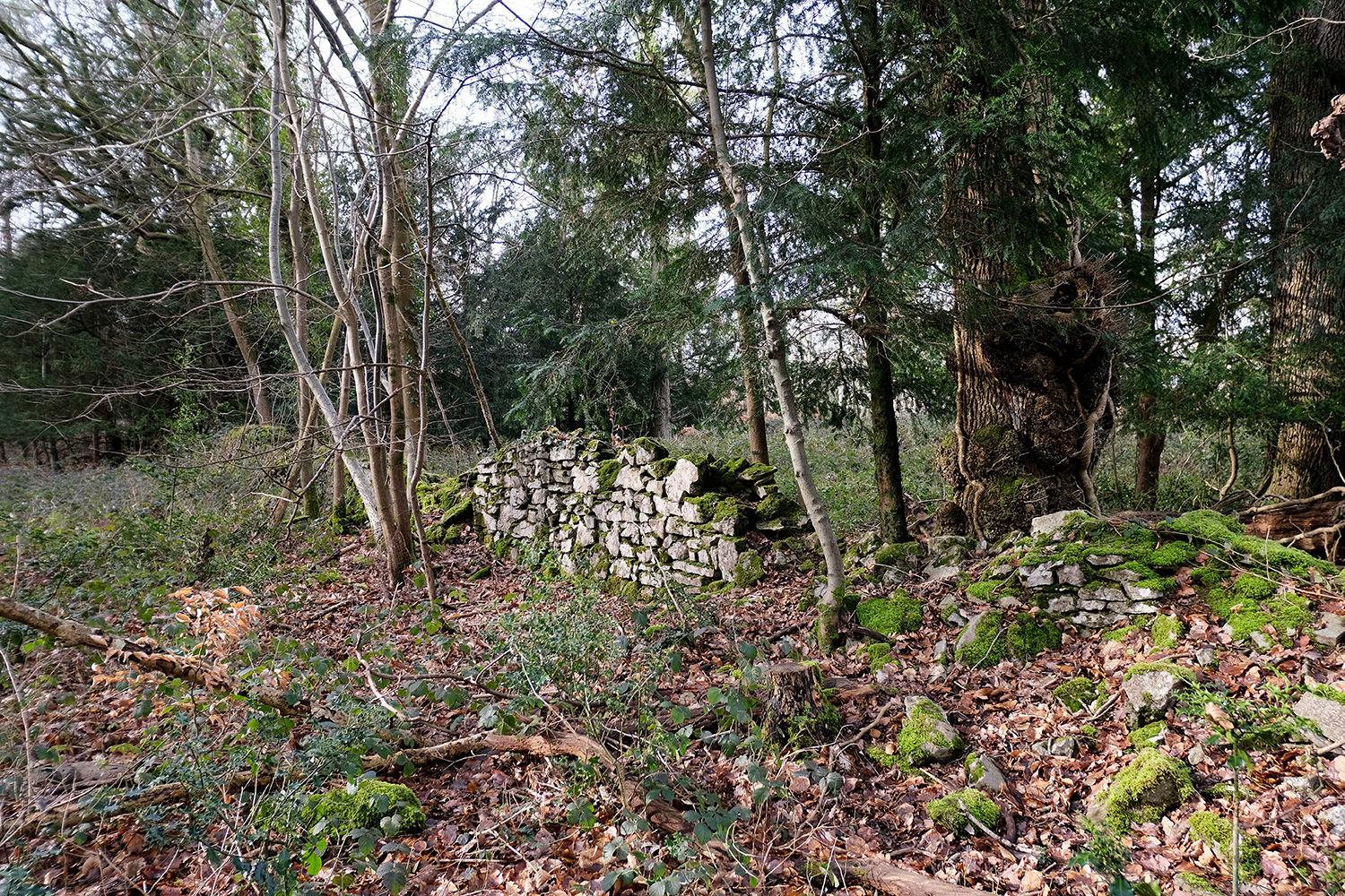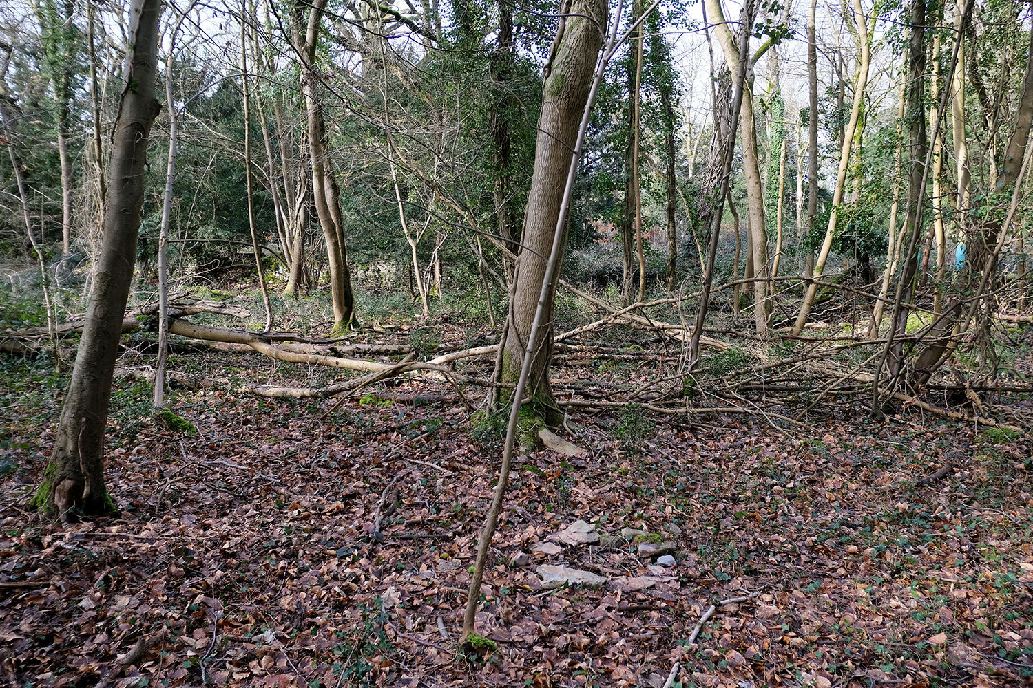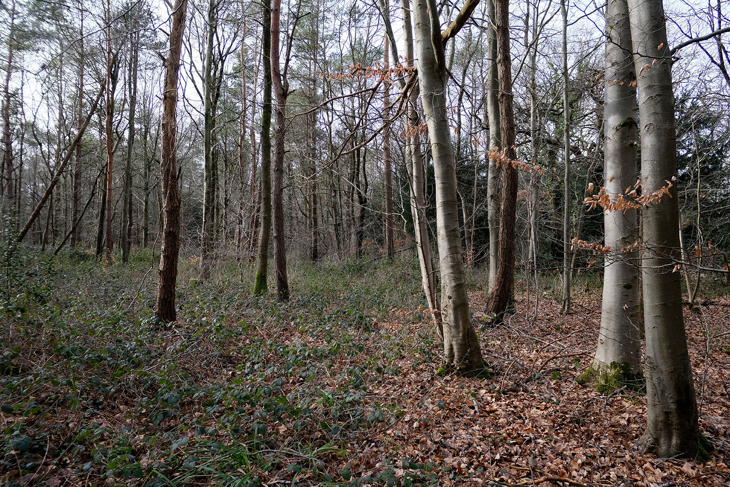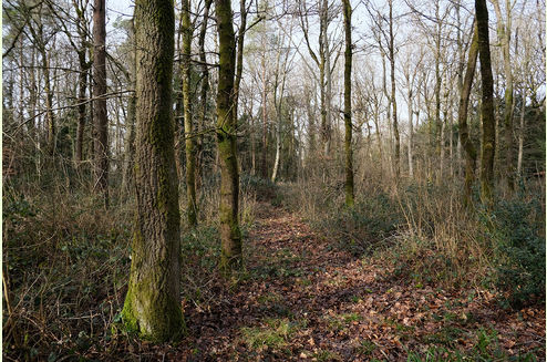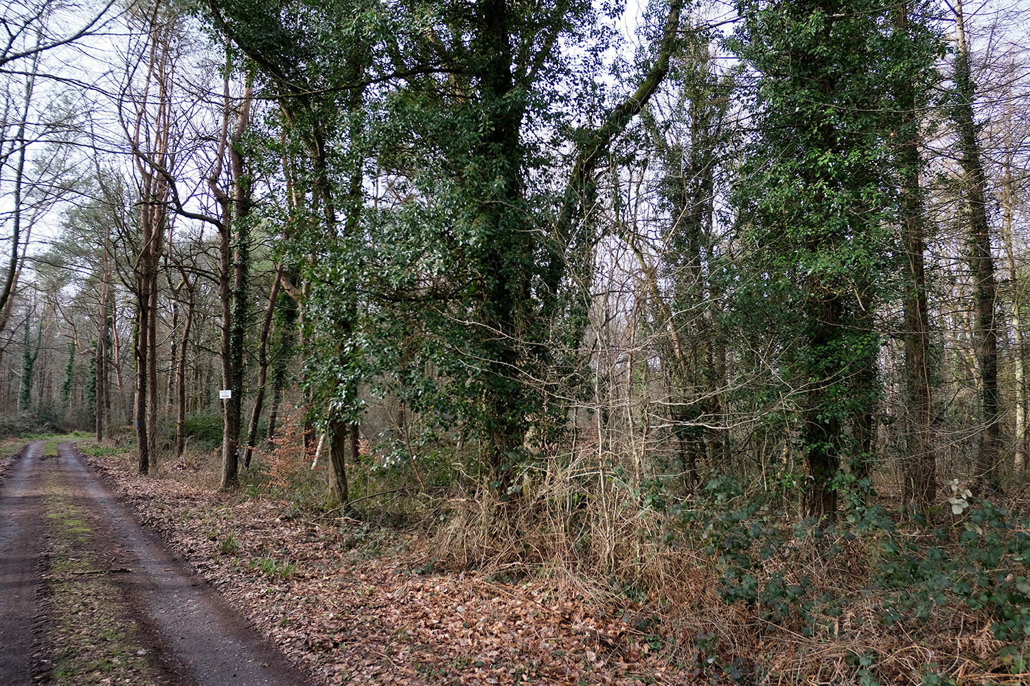 The woodland is attractively mixed, with impressive oak and beech dominating the central areas, with a scattering of ash, hawthorne and holly at lower levels. To the east, an open ride runs north to south framed by tall conifers providing striking contrast while providing additional access for management purposes. The occasional yew can also be found dotted throughout the wood and alongside the old stone wall that marks the northern boundary.