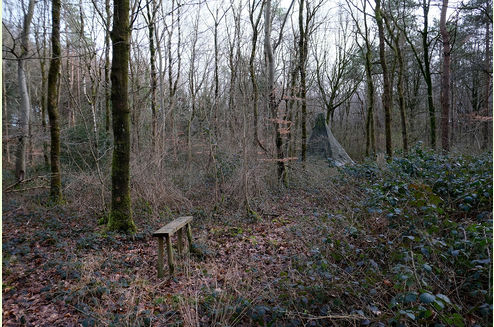 Boundaries: The boundary is open E, W and S and borders neighbouring woodland. S follows the main access track. North follows an old stone wall and woodland beyond. The boundaries are also marked with light blue paint on trees and posts.