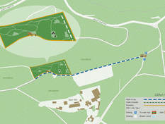- Climb over the gate or pass through the fence to enter the woodland and follow the track marked in blue on the map.