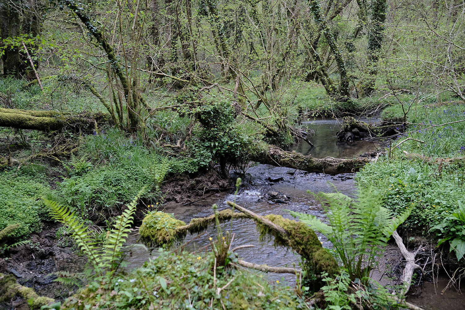 Accessed from a quiet lane, the woodland boasts beautiful open rides leading throughout the site. A sea of Bluebells carpet every inch of the floor in season making it virtually impossible not to step on any when walking through the land. Wild garlic, primrose, fern and abundant fauna can also be found at lower levels.