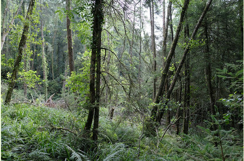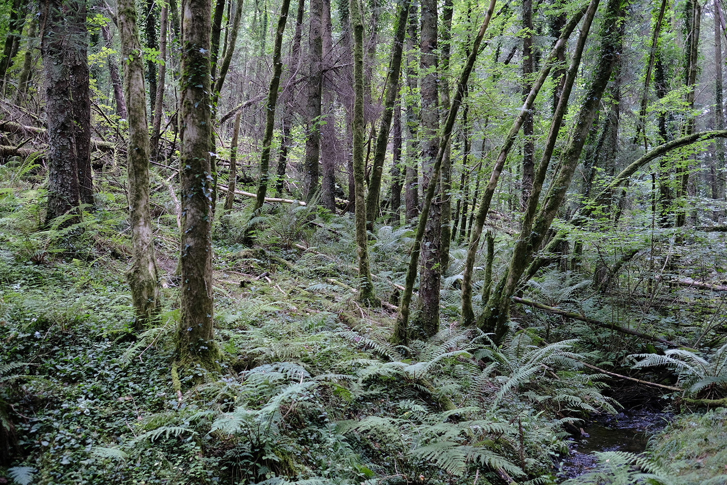 The woodland boasts a diverse range of tree species, including birch, oak, ash, spruce, Douglas fir, red cedar, sycamore, black alder, laurel, and holly. In season, bluebells carpet the floor and foxgloves add a wonderful splash of colour to the woodland. While navigating off the main track can be challenging in some areas, there are several flat, grassy spots along the river that are easier to access. On the western side of the river, the woodland consists mainly of conifer trees, making it easier to explore.