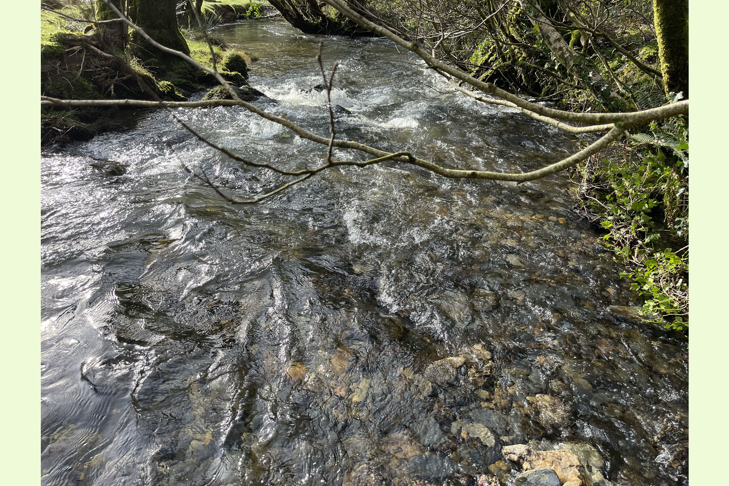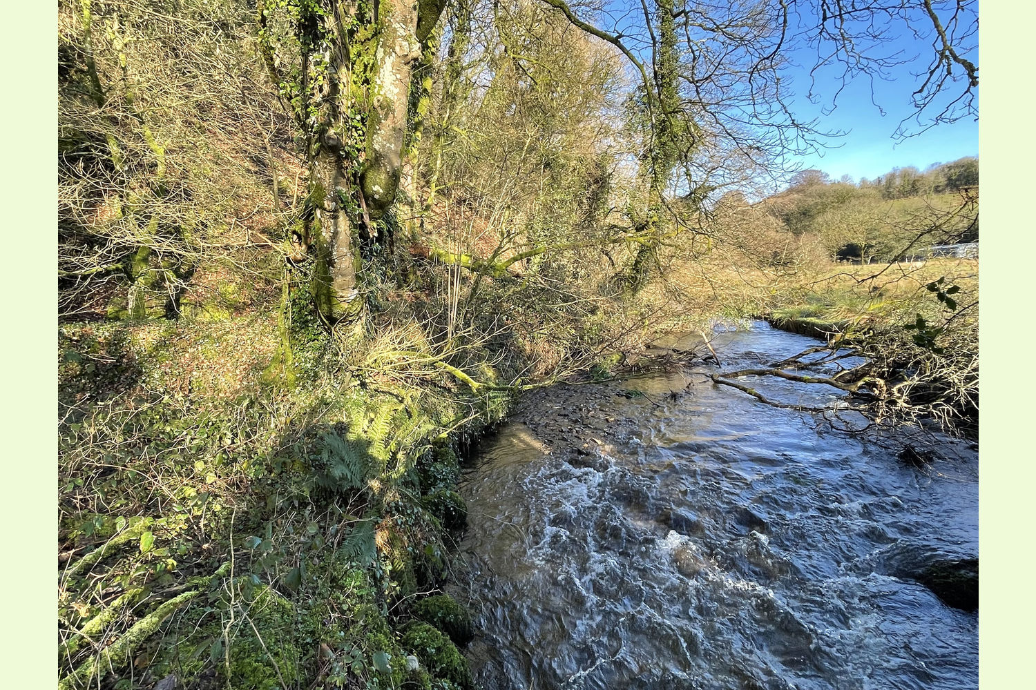 The wood is primarily south- and east-facing, running along the side of the valley of a stream that feeds into the Eastern Cleddau a few yards south of the wood The whole width of the stream is included within the boundary of Allt Dol-felfed.