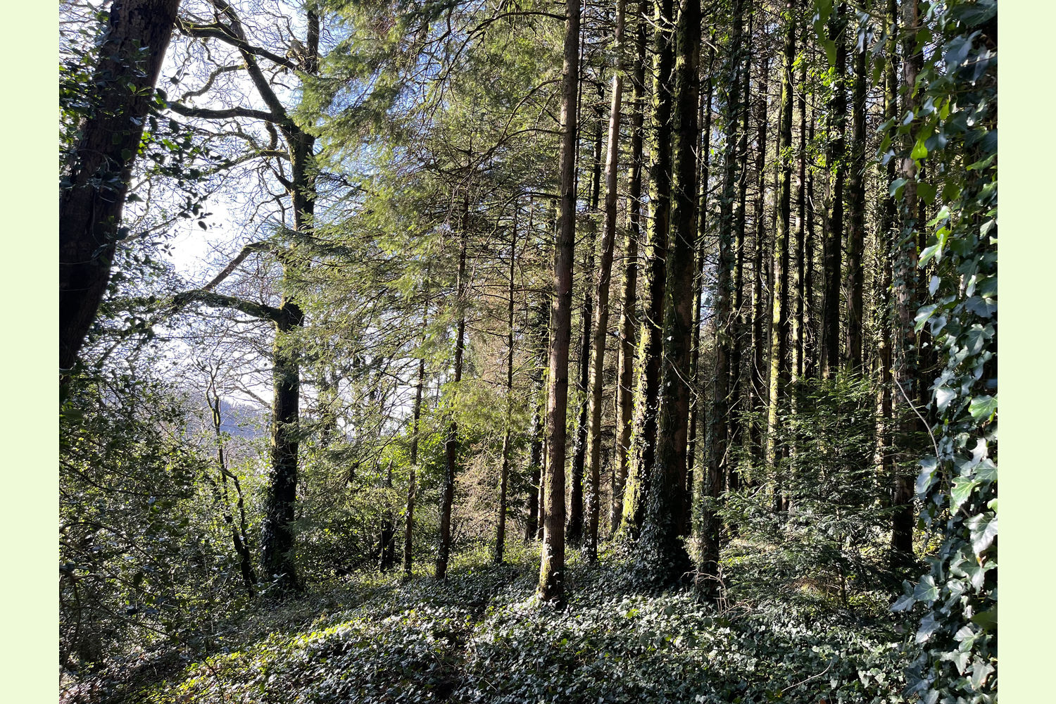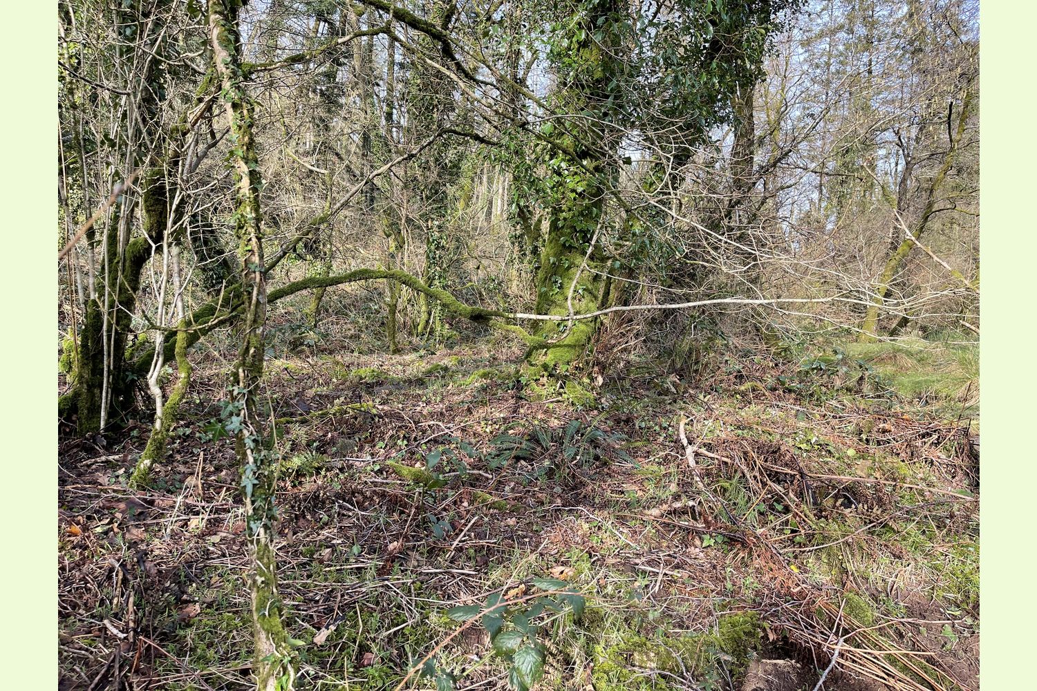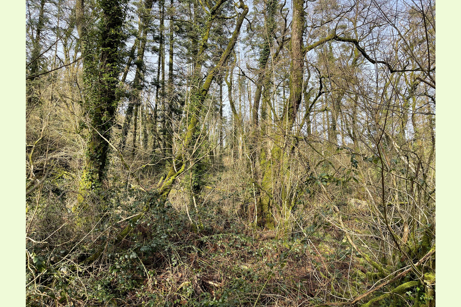 Access: the wood is currently only accessible on foot from the road at the southern edge, along the route of a public footpath. At the moment, this path is partly obstructed by trees, but this area of the wood is well-spaced, with little undergrowth, so it is easy to find a route to walk through.