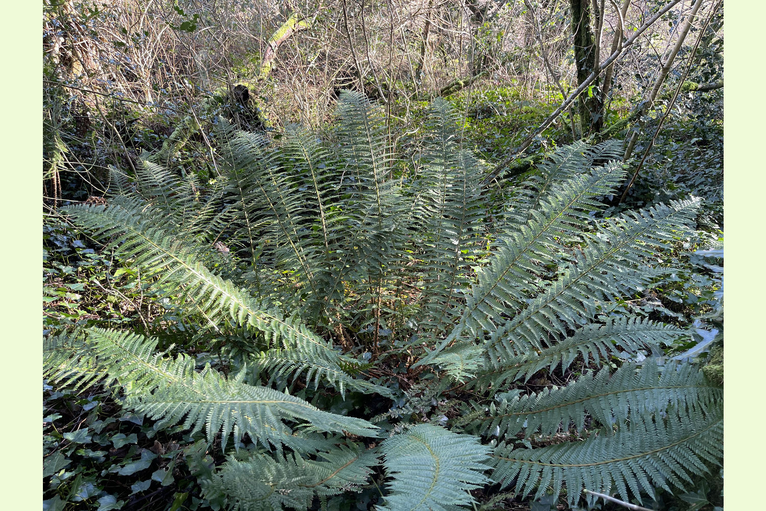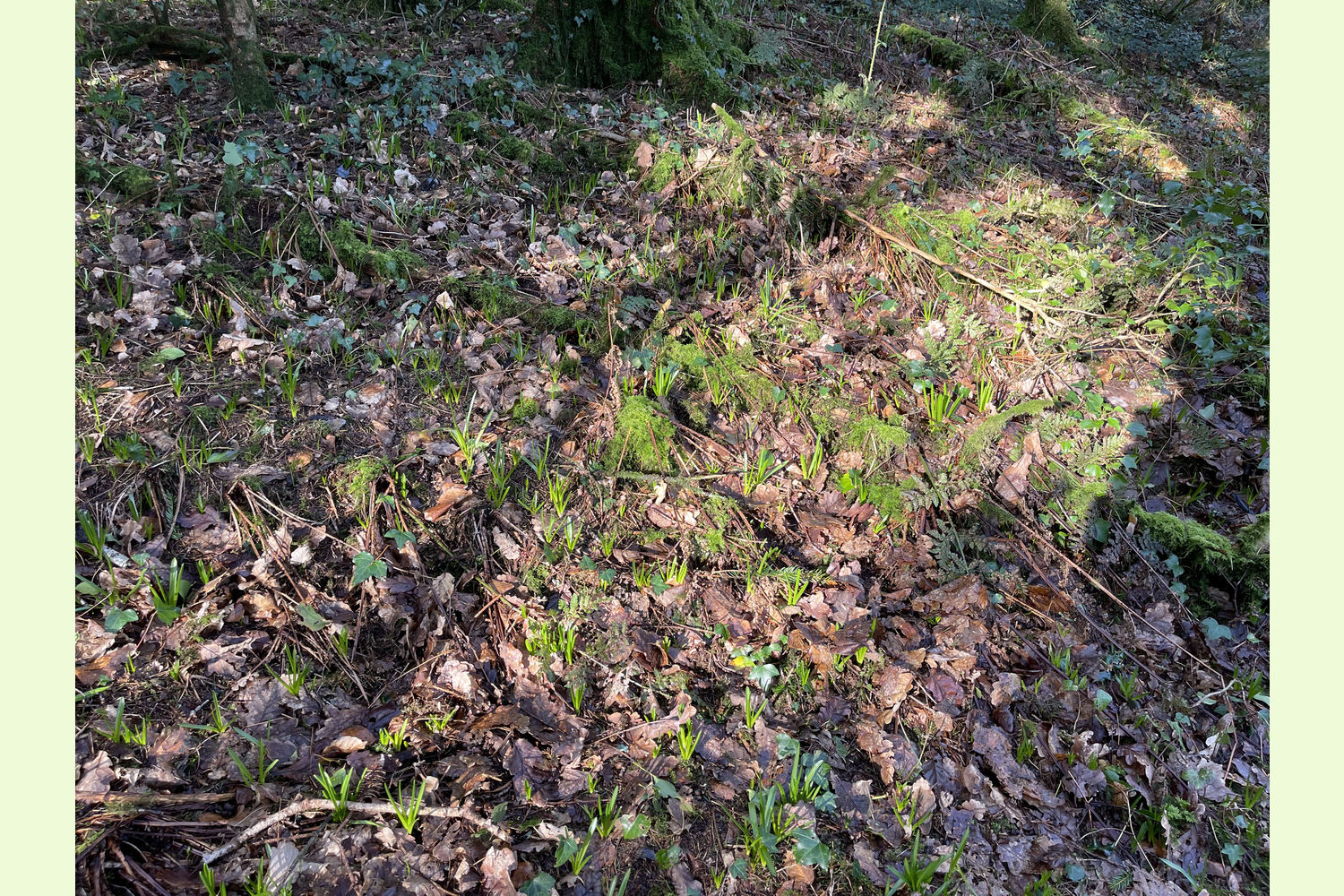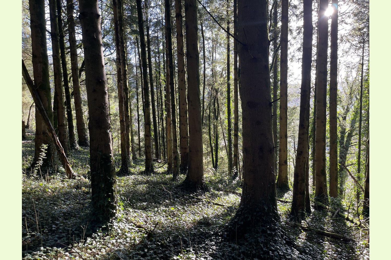 Access: the wood is currently only accessible on foot from the road at the southern edge, along the route of a public footpath. At the moment, this path is partly obstructed by trees, but this area of the wood is well-spaced, with little undergrowth, so it is easy to find a route to walk through.
