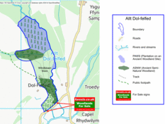 Public access: there is a public footpath through the southern end of Allt Dol-felfed. A neighbouring land owner has a right to drive cattle over a route through the middle of the wood, but it is a right that may no longer be exercised.