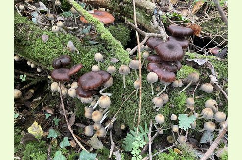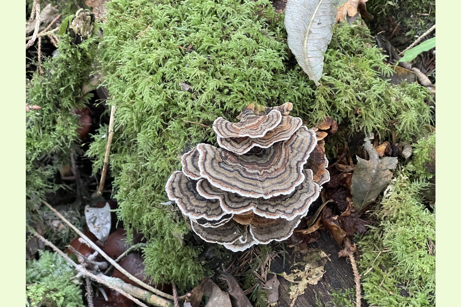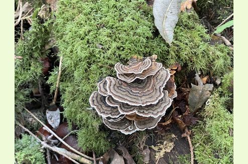 Along the earth bank which runs through the woodland on an east/west axis in the southern half of Ffordd Pererin, you will find some lovely specimens of oak, and the stream bank on the woodland's south eastern boundary supports various broadleaf species of various ages including hazel and holly; ash, oak and birch sapling.