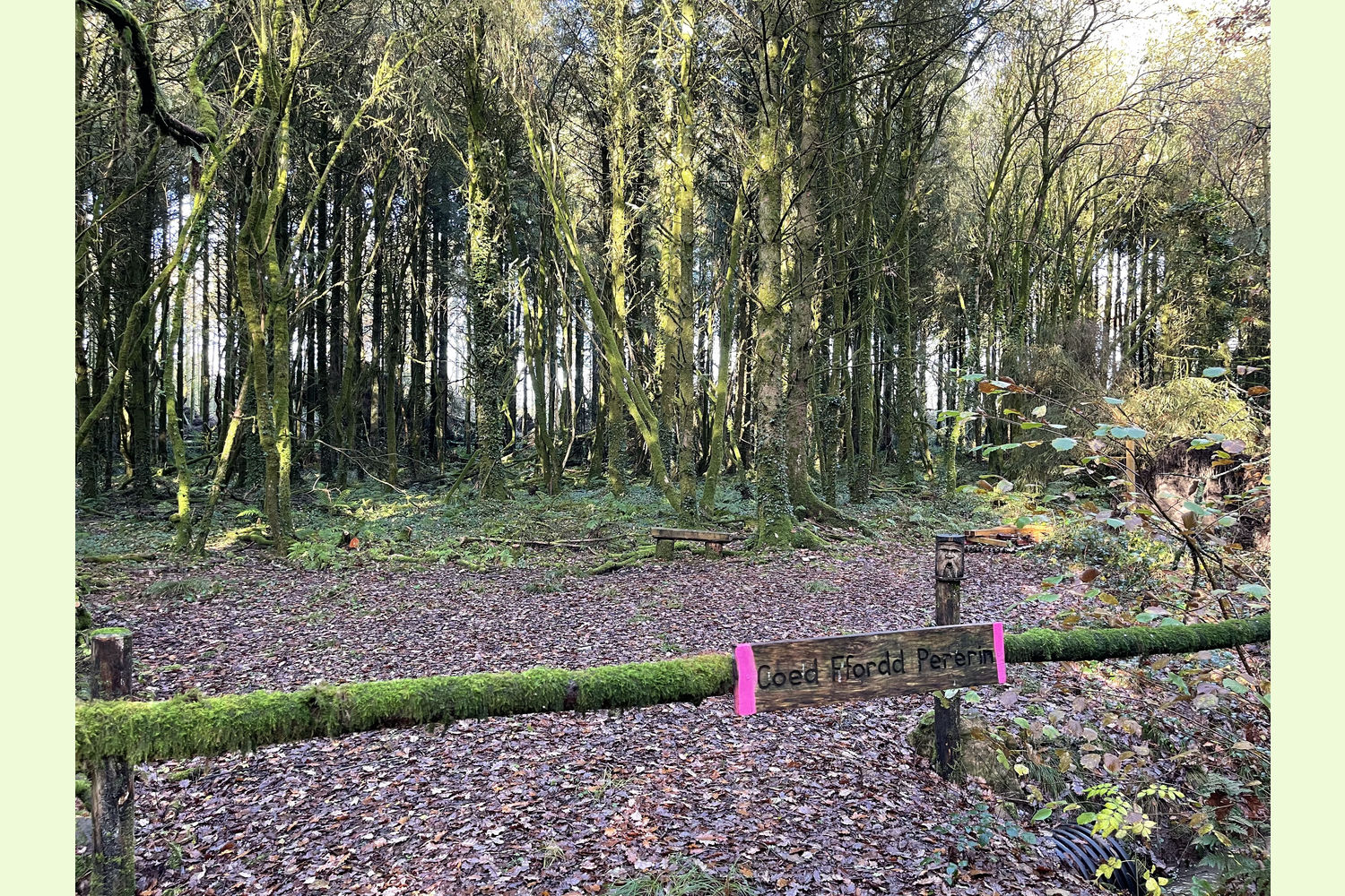 The public footpath that runs through Coed Ffordd Pererin links to the Wales Coastal path which following west would take you to Laugharne or travelling east, would take you to the closer Llansteffan.