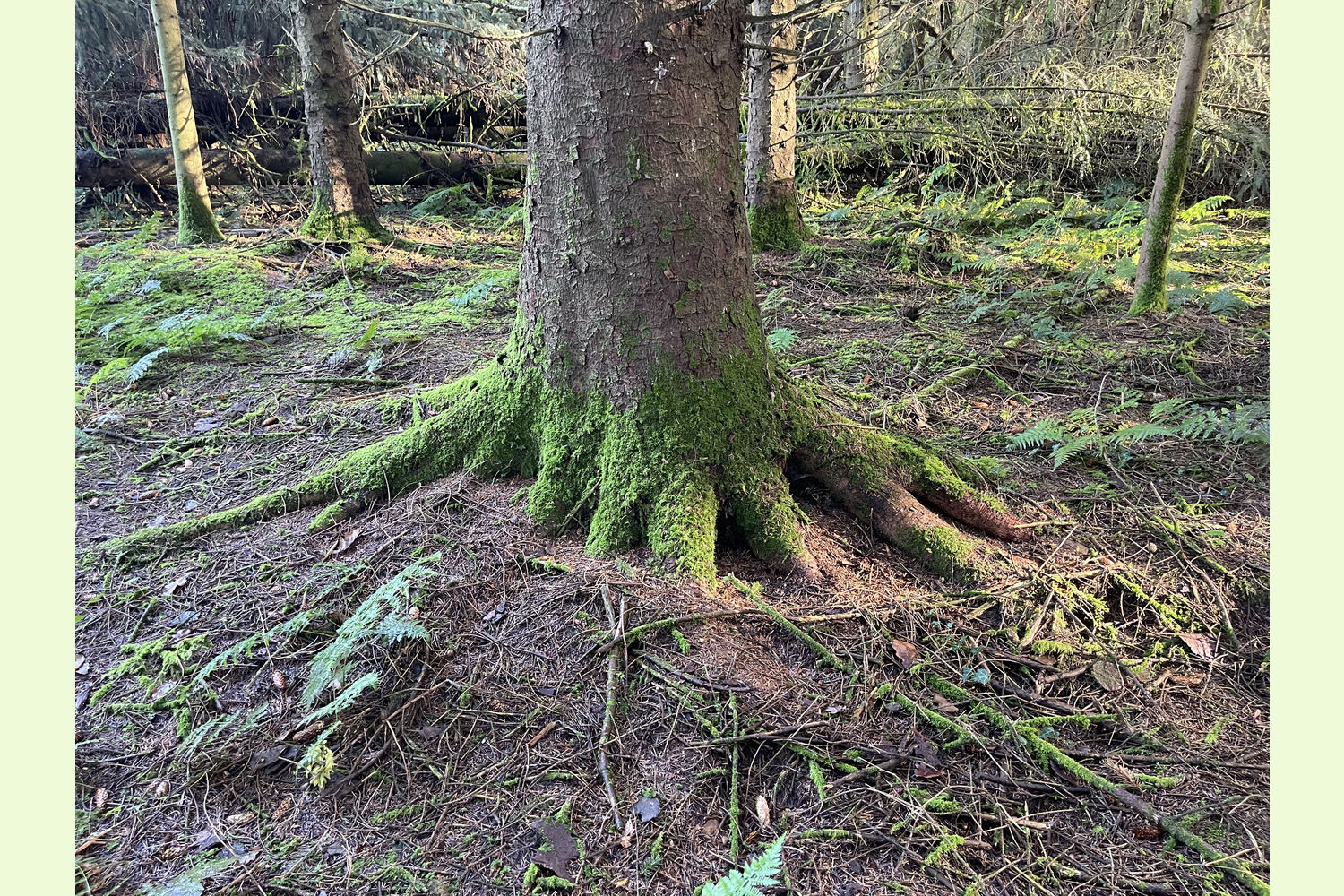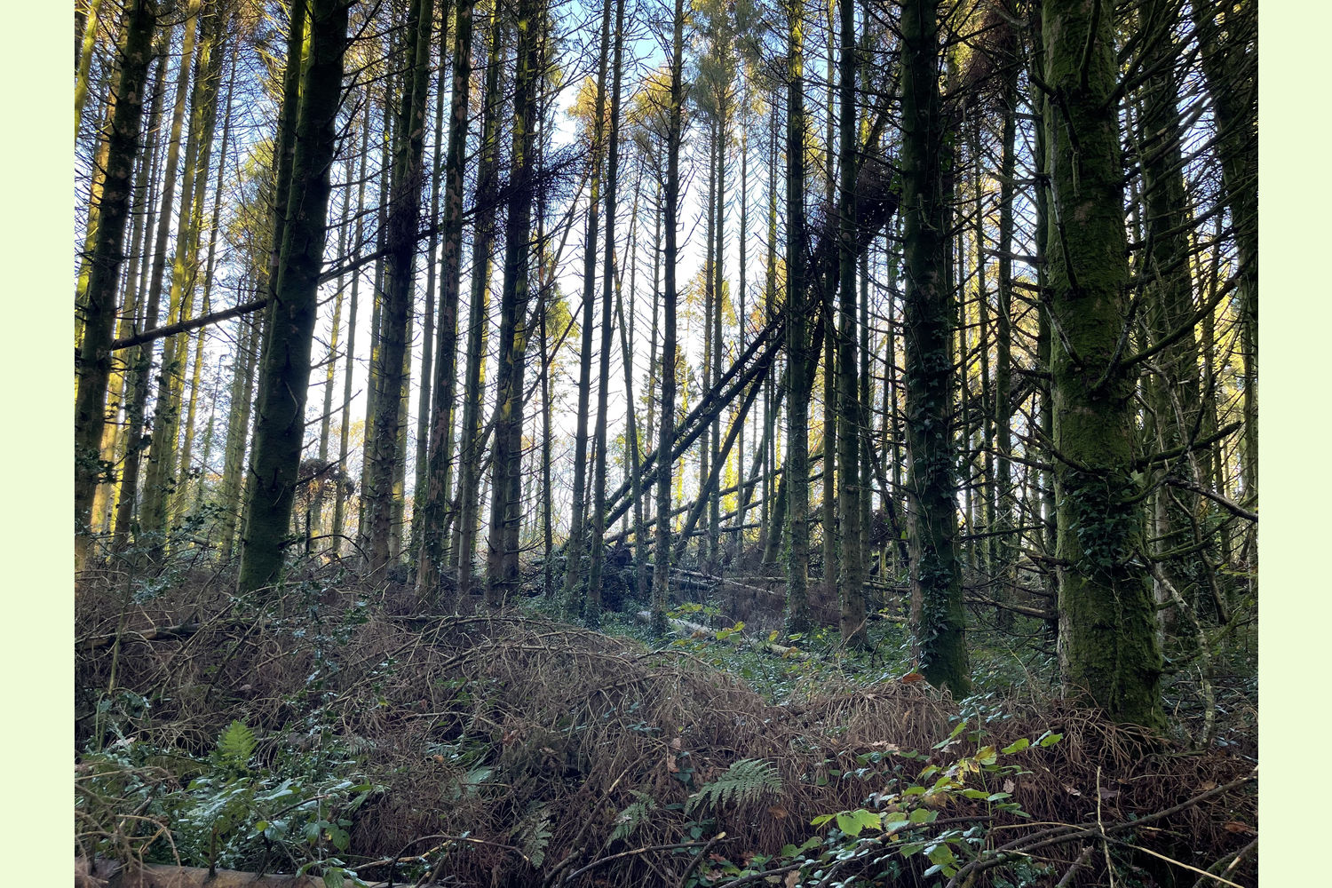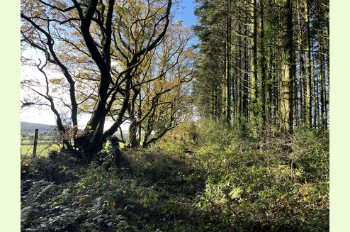 It's a lovely location close to the village and estuary beach of Llansteffan, reachable by foot via the footpath which crosses through the southern part of the wood, and the location and level ground throughout Coed Ffordd Pererin mean there is great potential here to create camping areas for family forestry. Parts of the larger woodland Allt y Gelli (although not Coed Ffordd Pererin itself) are designated PAWS (Plantation on Ancient Woodland Site), with a few areas of Ancient Semi Natural Woodland. From what we are now learning about the connectivity of tree growth and the microrhyzome networks within soil and forests, this could well be seen to have a beneficial impact on any new planting in Ffordd Pererin and its development or restoration.