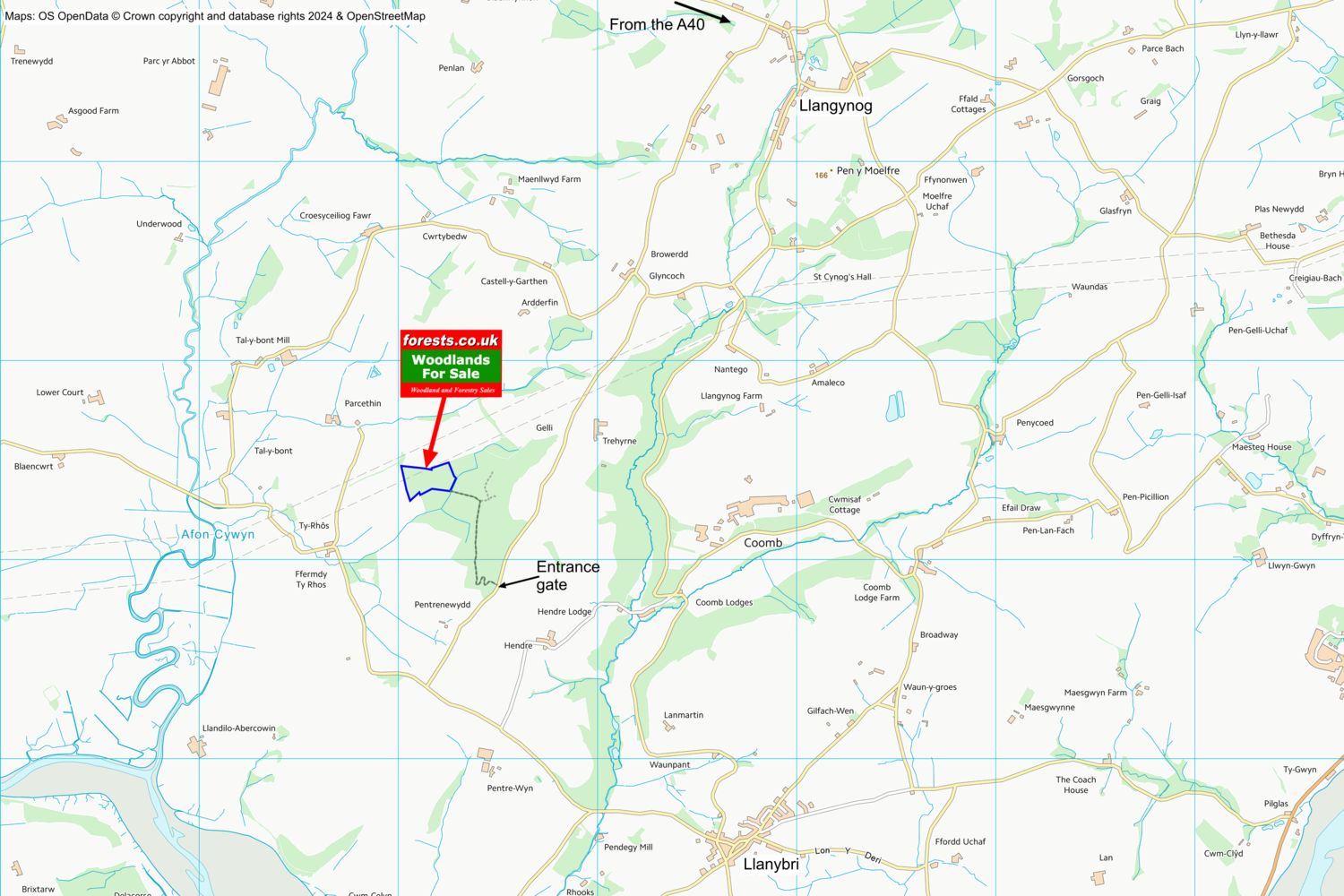 Follow this minor road for approx 1 mile and you will see a Forests.co.uk Woodlands for Sale sign on your right at the gated entrance to the woodlands, set back from the road.