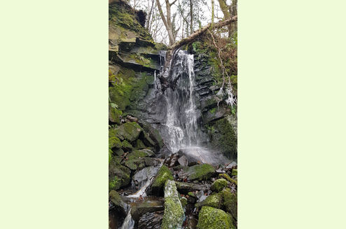 A path from the main entrance runs progressively southwest, past an old war-time ‘gun bunker’ down to the riverside with a log bench near the road bridge which echoes the sound of the tumbling water. A foot path doubles back, in places quite steeply, to an undisturbed area of the woodland and the base of the waterfall and a convenient access to the riverside.
