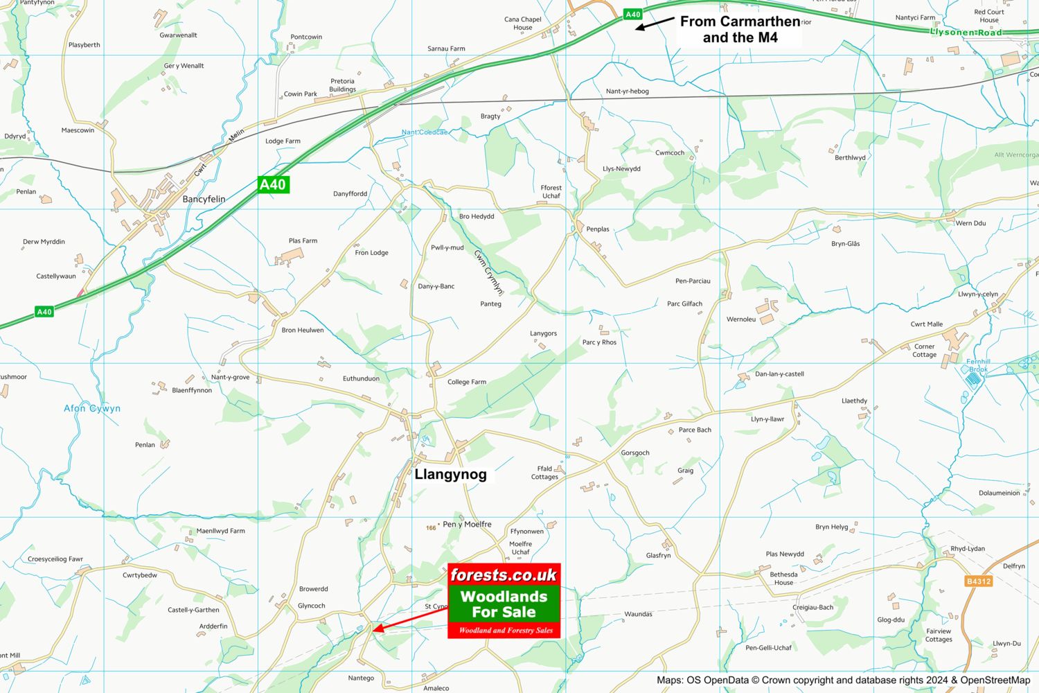 Local area: The woodland is just six miles south-west of Carmarthen, four miles north of Llansteffan beach and castle, and ten miles north east of Laugharne with its castle and the Dylan Thomas Boathouse. The famous Pendine Sands and the Museum of Land Speed are just 13 miles away.
