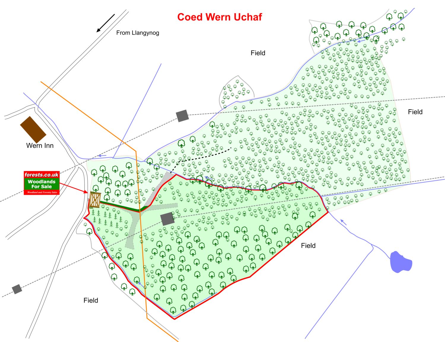 Adjoining land: Coed Wern Uchaf and Coed Wern isaf are available separately, or can be bought together.