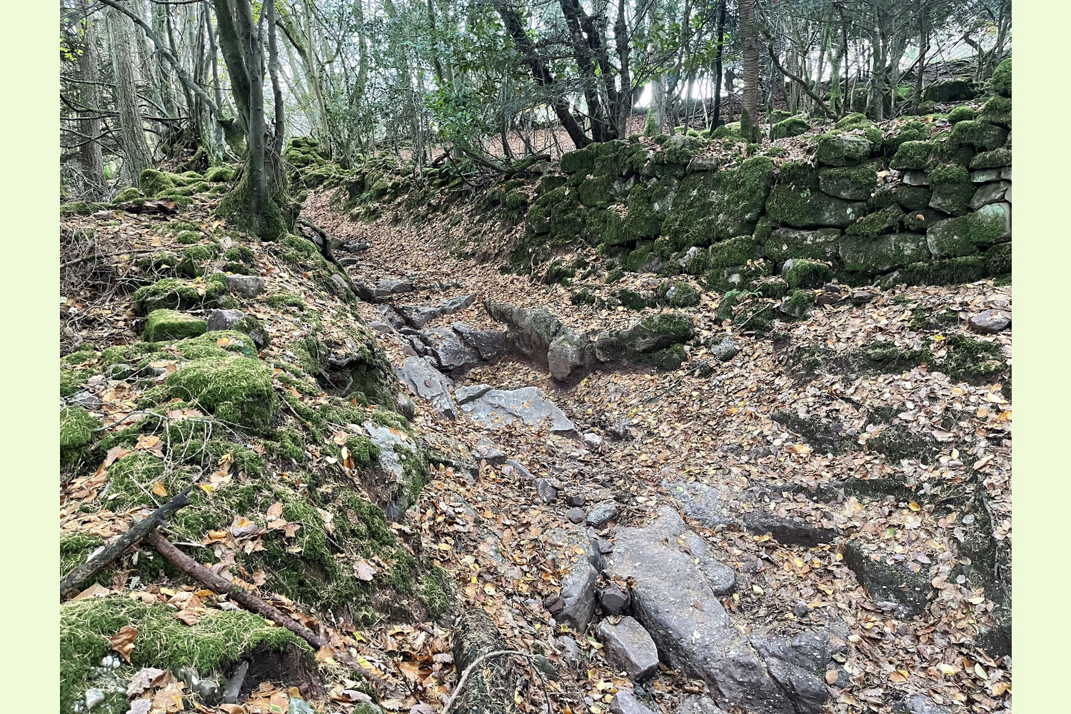 Follow the road for two miles, going past the Whitebrook restaurant on the left, and Kinson Farm on the right. There is a layby a few yards further on. Park in the layby and continue on foot to the entrance to the gateway into the wood.