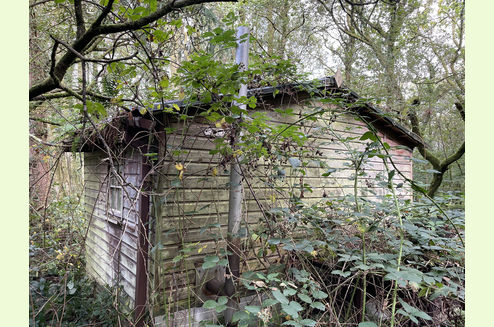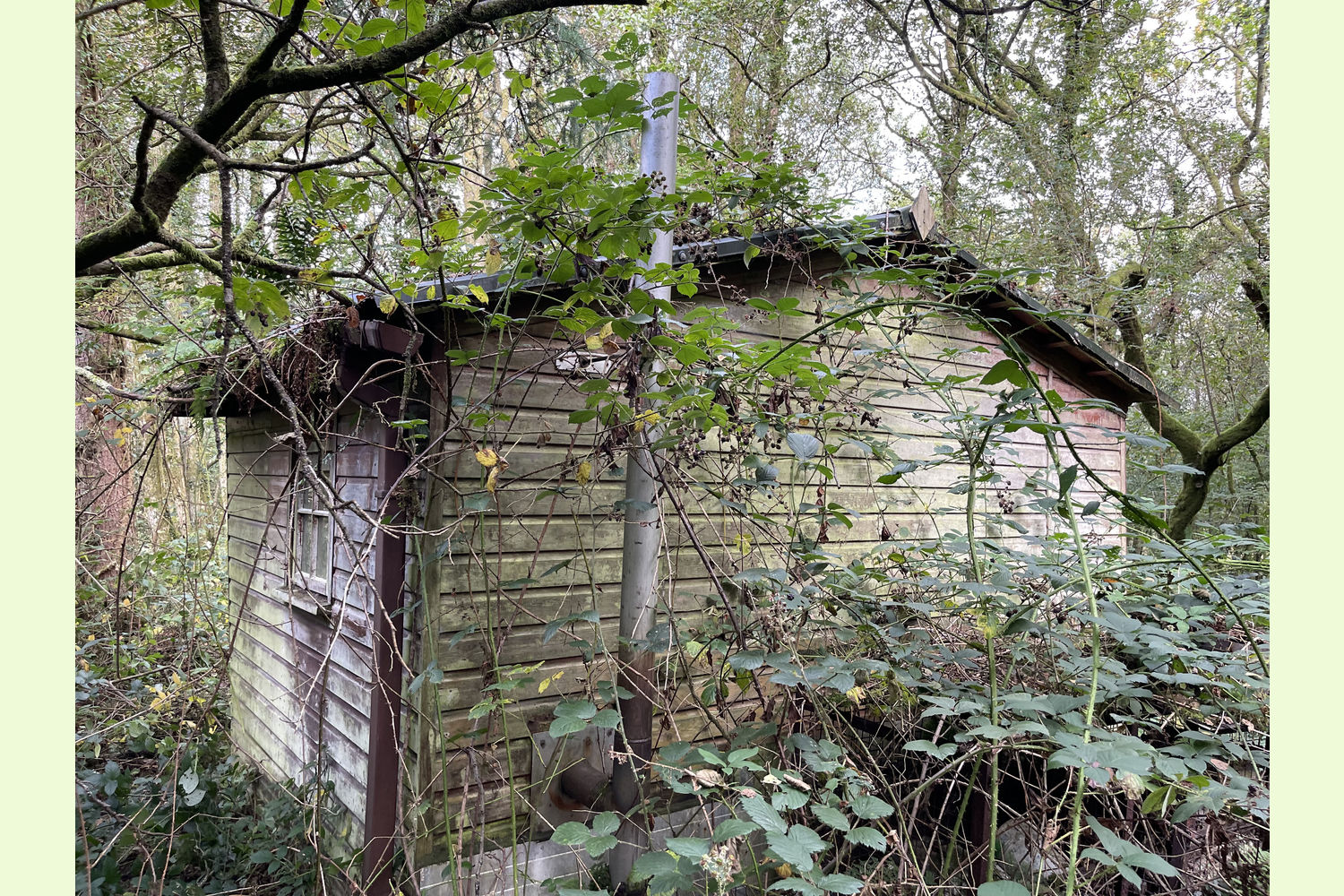 Shelter: There is a wooden cabin/summer house with a steel roof on the banks of the pond, built in 1986 to provide shelter when working at the woodland.