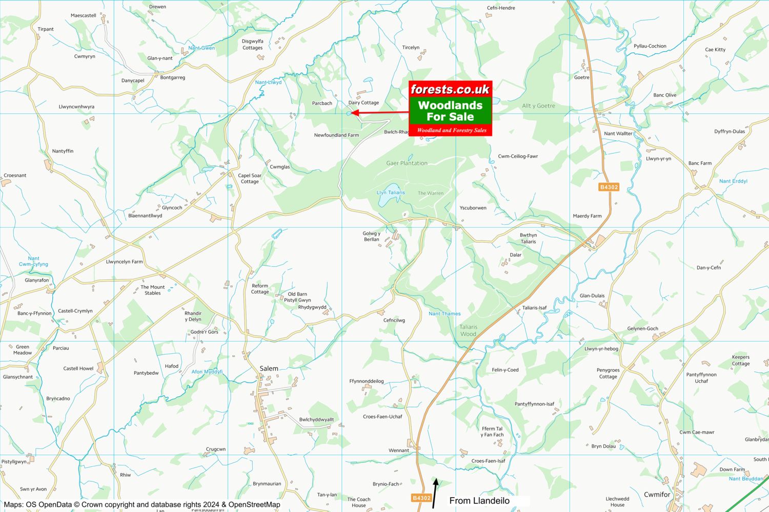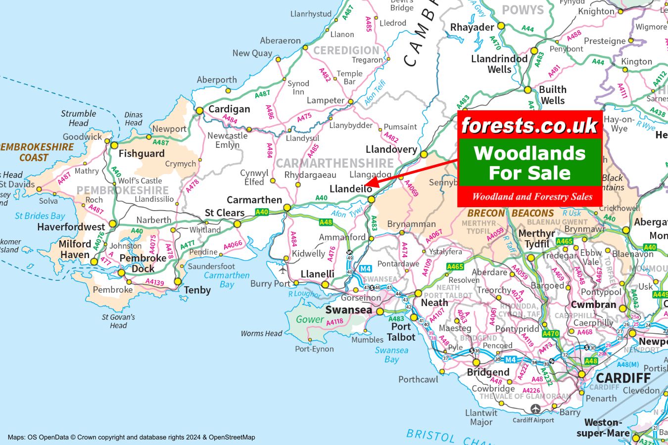 Local area: The woodland is in a very secluded area at the end of a no through road, only 6 miles north of the A40 at Llandeilo.