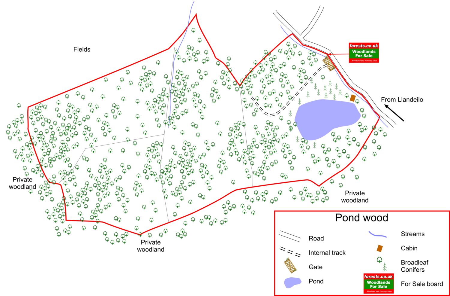 - Nearest postcode: SA19 7NW (Pond wood is on the left, 0.2 miles before your destination)