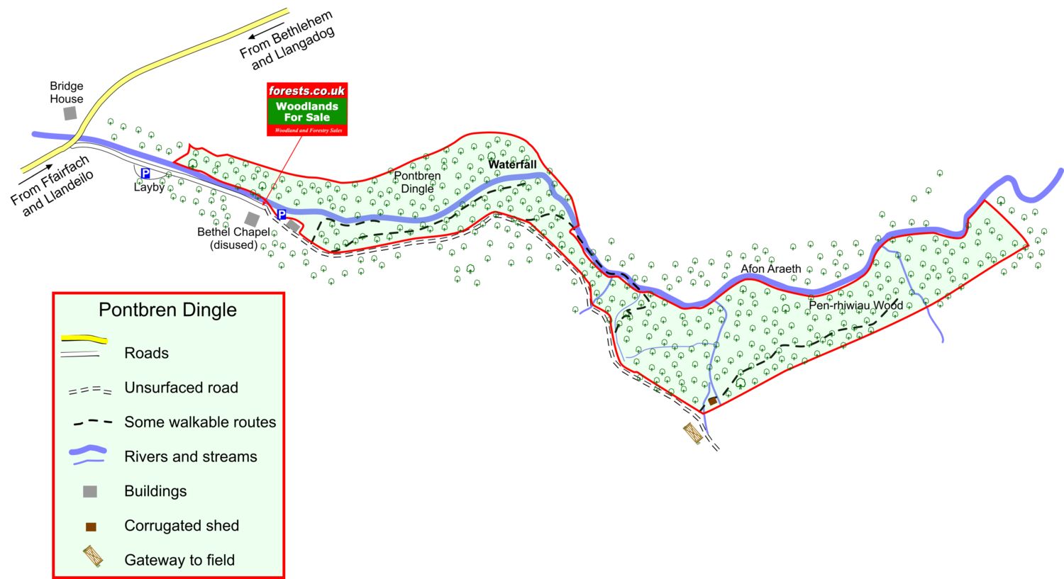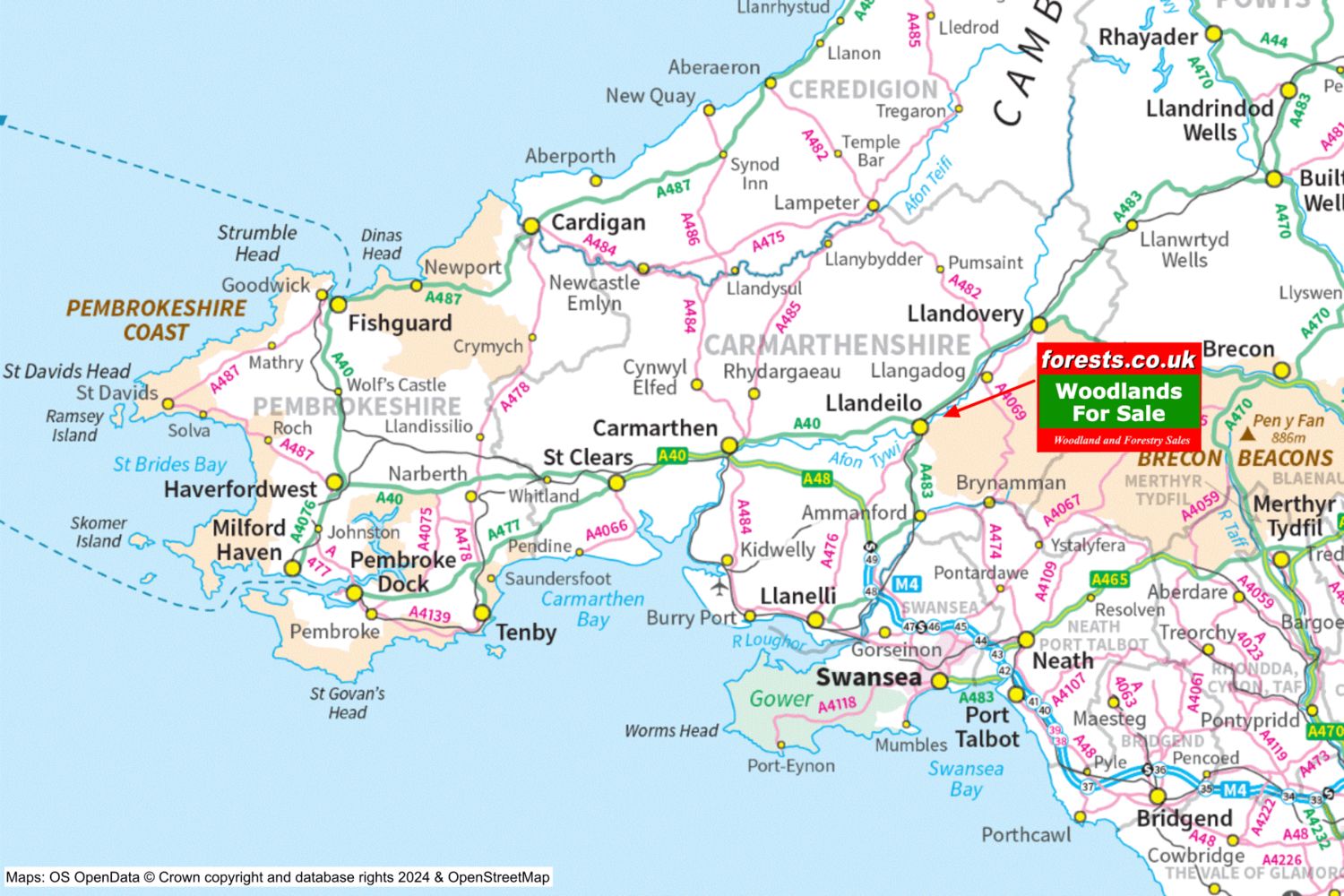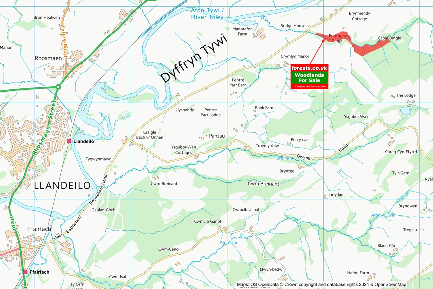 Local area: The woodland is 2½ miles from Ffairfach (where there is a railway station) and 3 miles from the centre of Llandeilo.